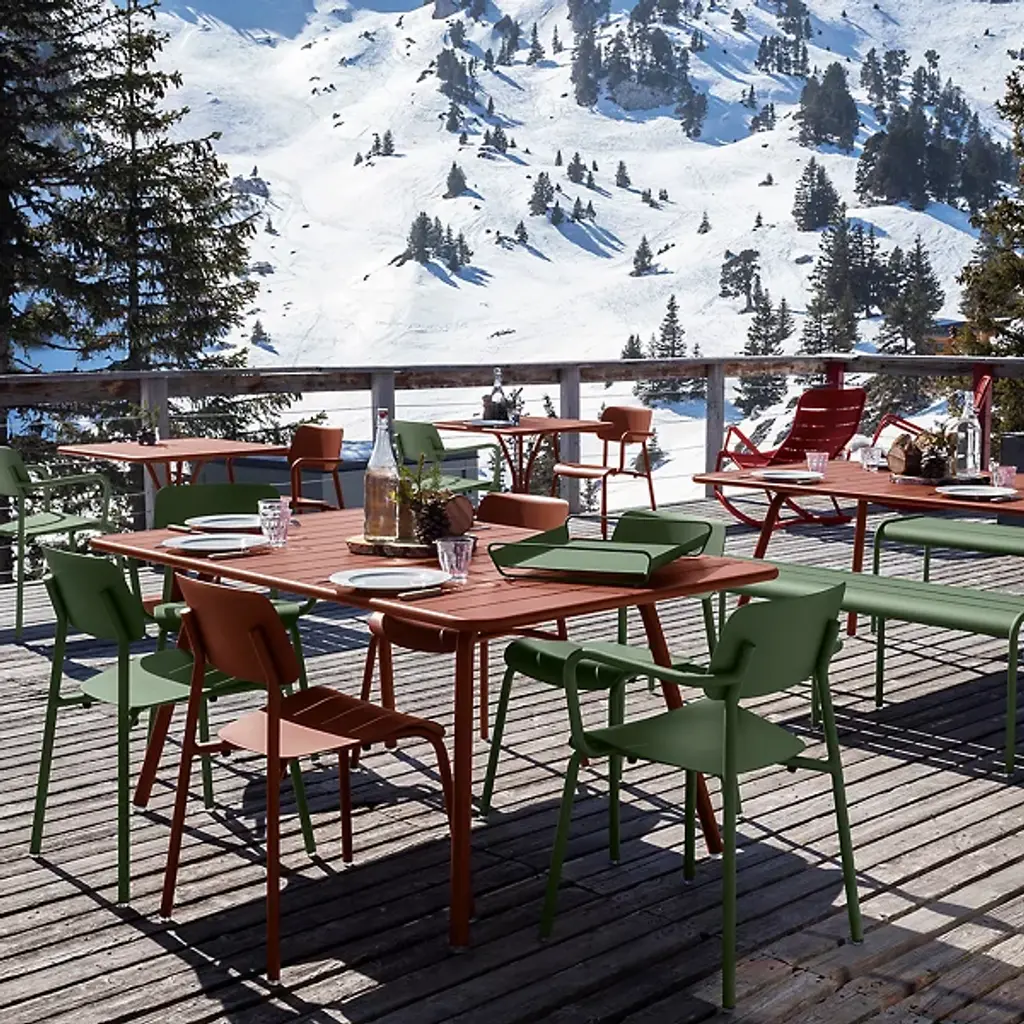 The Fermob Luxembourg Bench is smooth, stackable and stylish. Inspired by the seating throughout the Jardin du Luxembourg in Paris, this bench is nearly five feet long, able to comfortably seat three to four people. It features a tubular aluminum frame and extruded aluminum slats in a durable polyester powder coat. Available in Fermob's full array of colors.