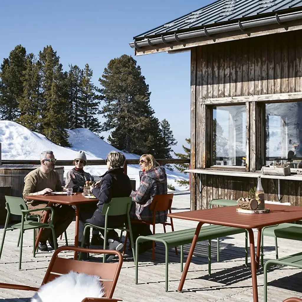 The Fermob Luxembourg Bench is smooth, stackable and stylish. Inspired by the seating throughout the Jardin du Luxembourg in Paris, this bench is nearly five feet long, able to comfortably seat three to four people. It features a tubular aluminum frame and extruded aluminum slats in a durable polyester powder coat. Available in Fermob's full array of colors.