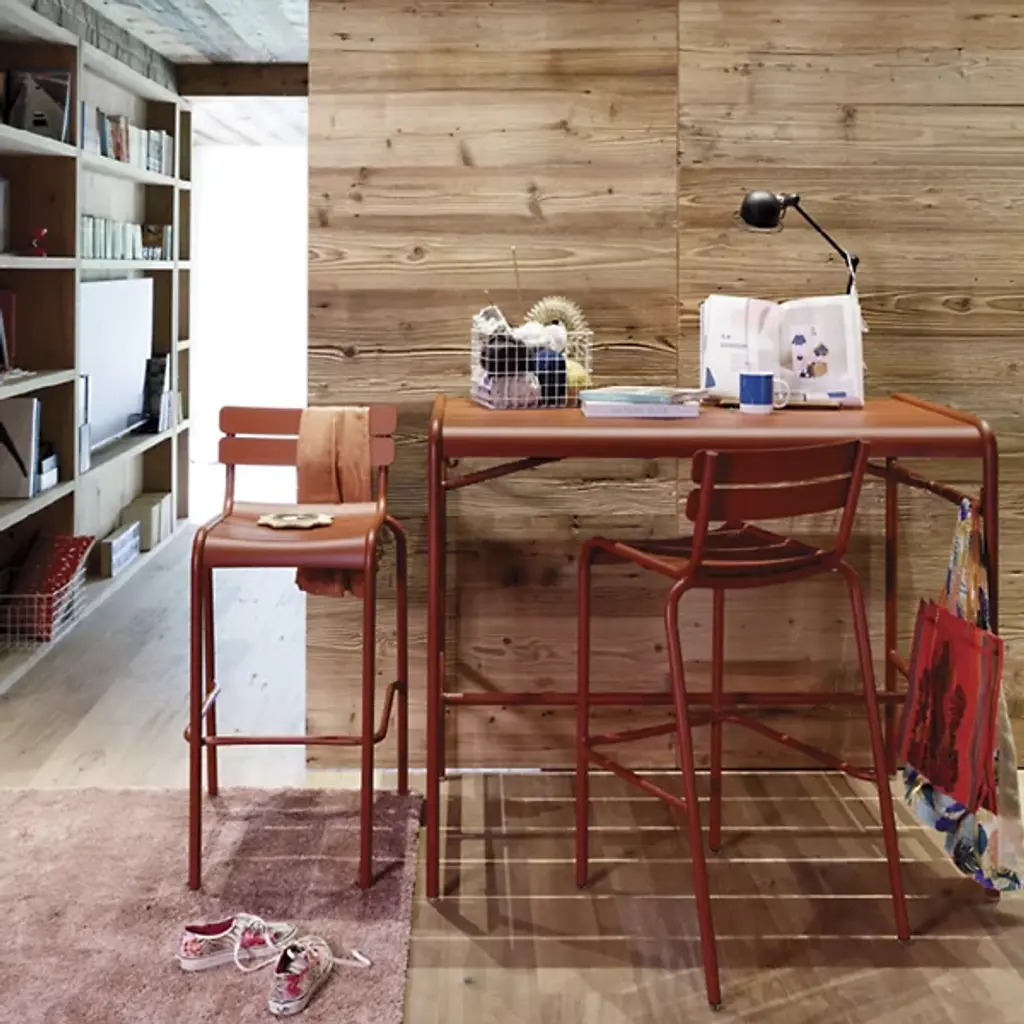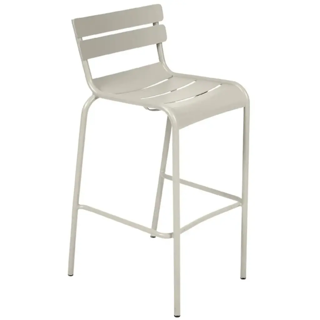 Enjoy happy hour in high style and carefree comfort. The Luxembourg High Stool, Set of 2 by Fermob is a comfortable stackable bar stool made for home and commercial settings. Designer Frédéric Sofia designed the stool to be a modern reinterpretation of the iconic Jardin du Luxembourg chairs in Paris. A double-slatted back and contoured seat with a waterfall front provide relaxed seating at a poolside bar or high table. Crafted from lightweight Aluminum, the powder coated stools are resistant to UV rays and wet weather conditions. Top this high stool with a matching Color Mix Luxembourg Cushion and pair it with the Luxembourg Square High Table for cozy bistro eating on your deck or patio.