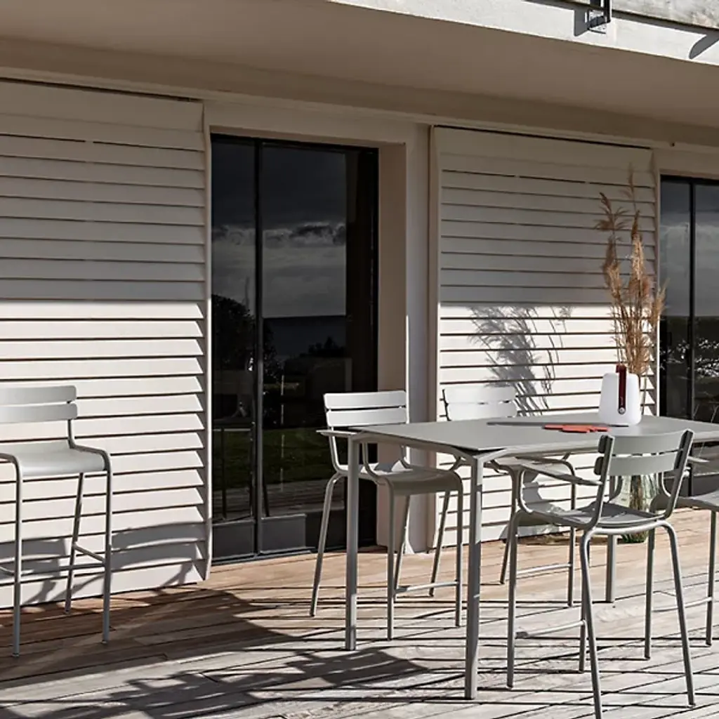 Enjoy happy hour in high style and carefree comfort. The Luxembourg High Stool, Set of 2 by Fermob is a comfortable stackable bar stool made for home and commercial settings. Designer Frédéric Sofia designed the stool to be a modern reinterpretation of the iconic Jardin du Luxembourg chairs in Paris. A double-slatted back and contoured seat with a waterfall front provide relaxed seating at a poolside bar or high table. Crafted from lightweight Aluminum, the powder coated stools are resistant to UV rays and wet weather conditions. Top this high stool with a matching Color Mix Luxembourg Cushion and pair it with the Luxembourg Square High Table for cozy bistro eating on your deck or patio.