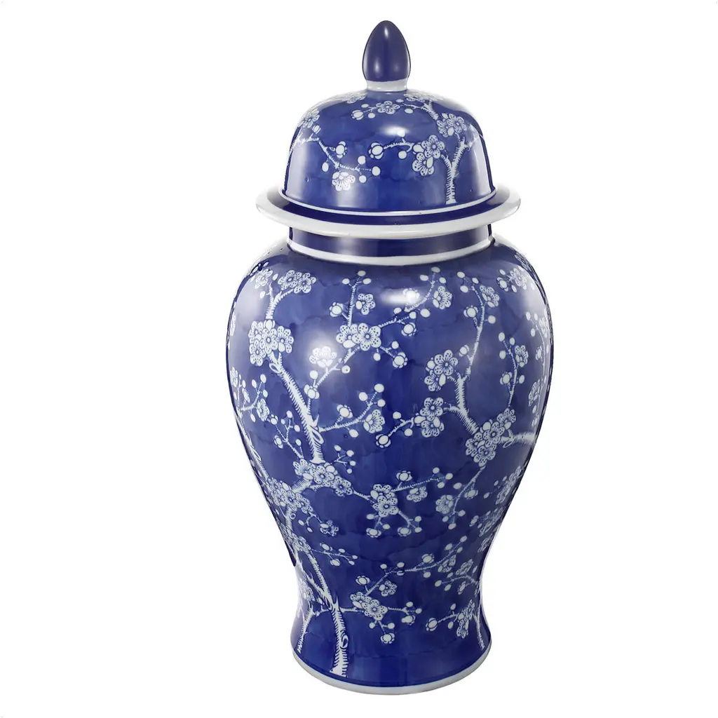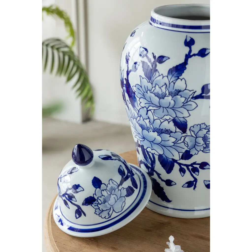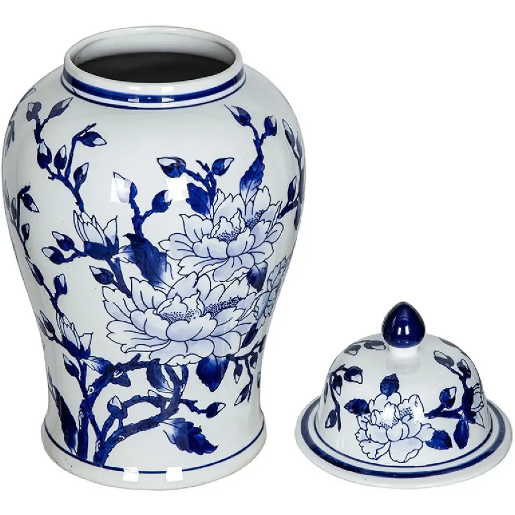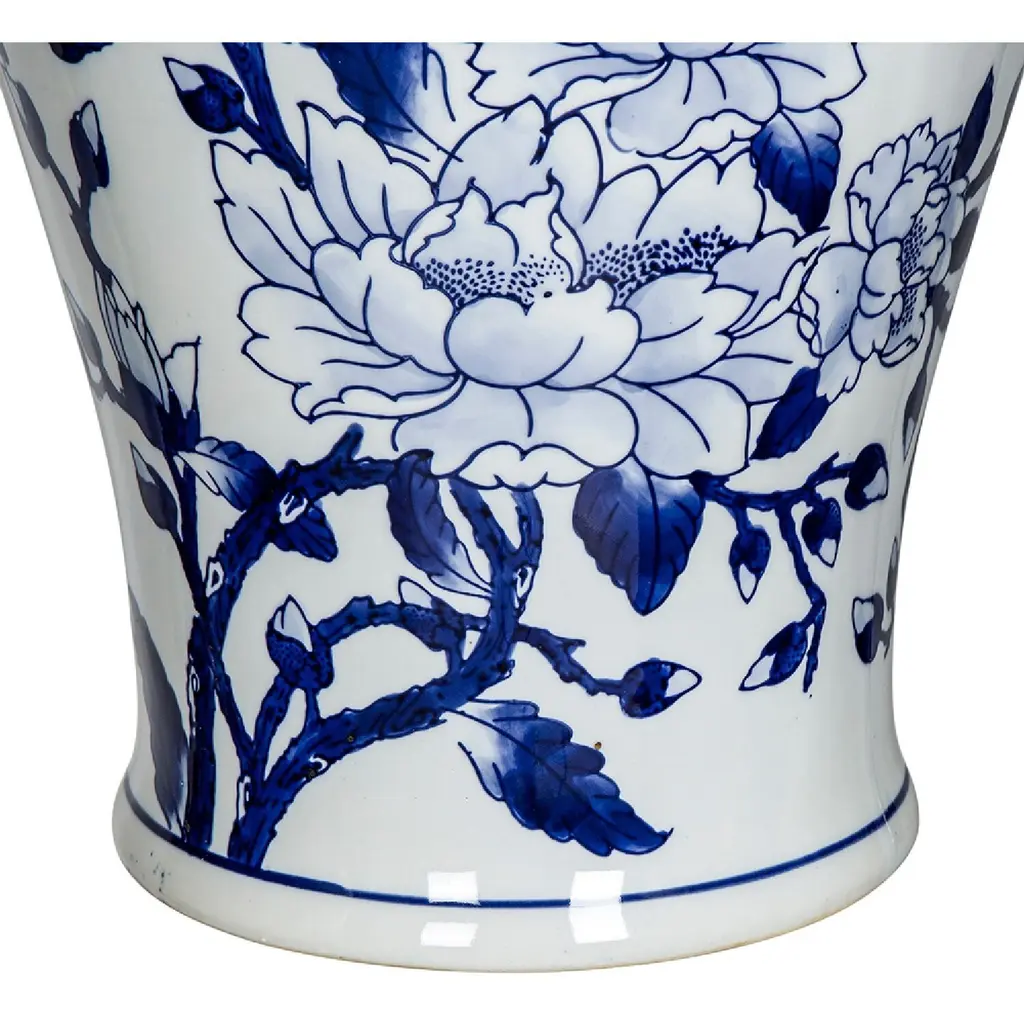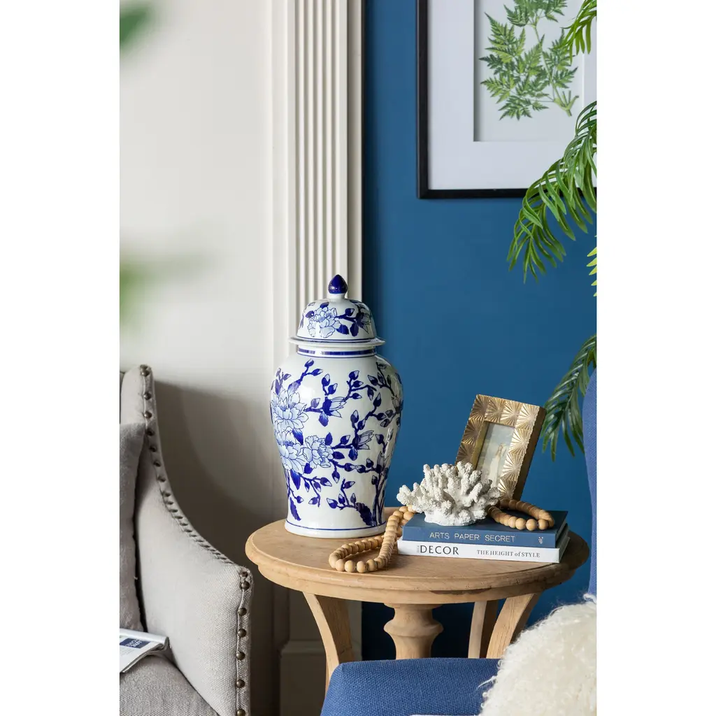 Crafted from 100% crisp porcelain, this artistic ginger jar draws inspiration from Ming Dynasty designs to create a timeless yet functional home accent piece. Standing 18 tall, it will introduce a vibrant touch to any room in your home either as decorative storage, a standalone centerpiece, or even as a vessel for a colorful flower arrangement.