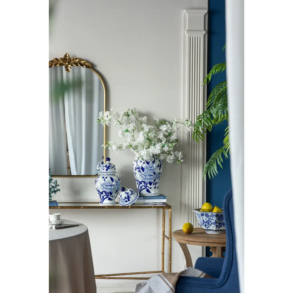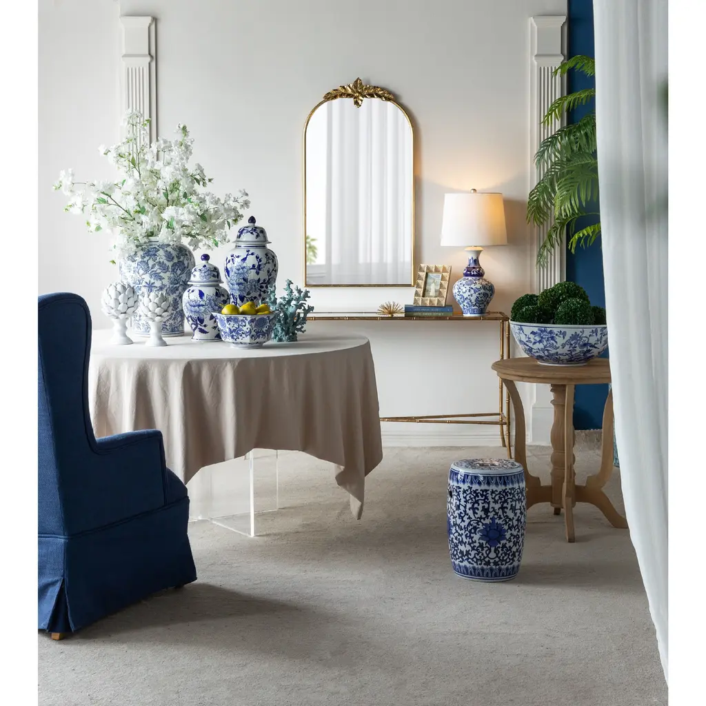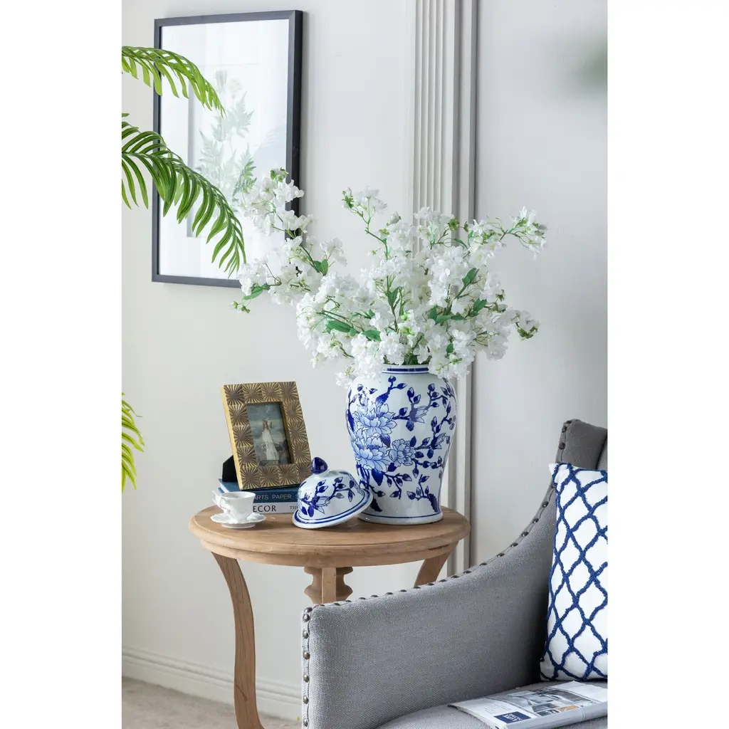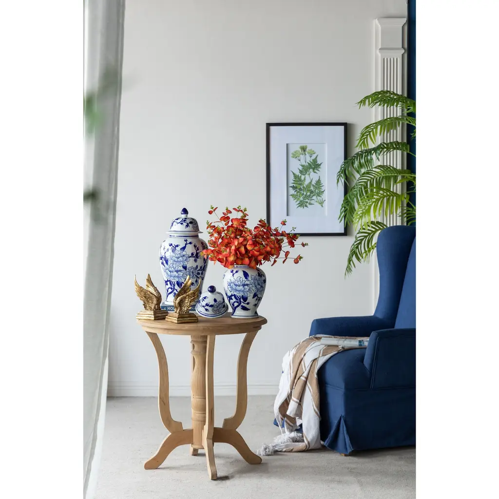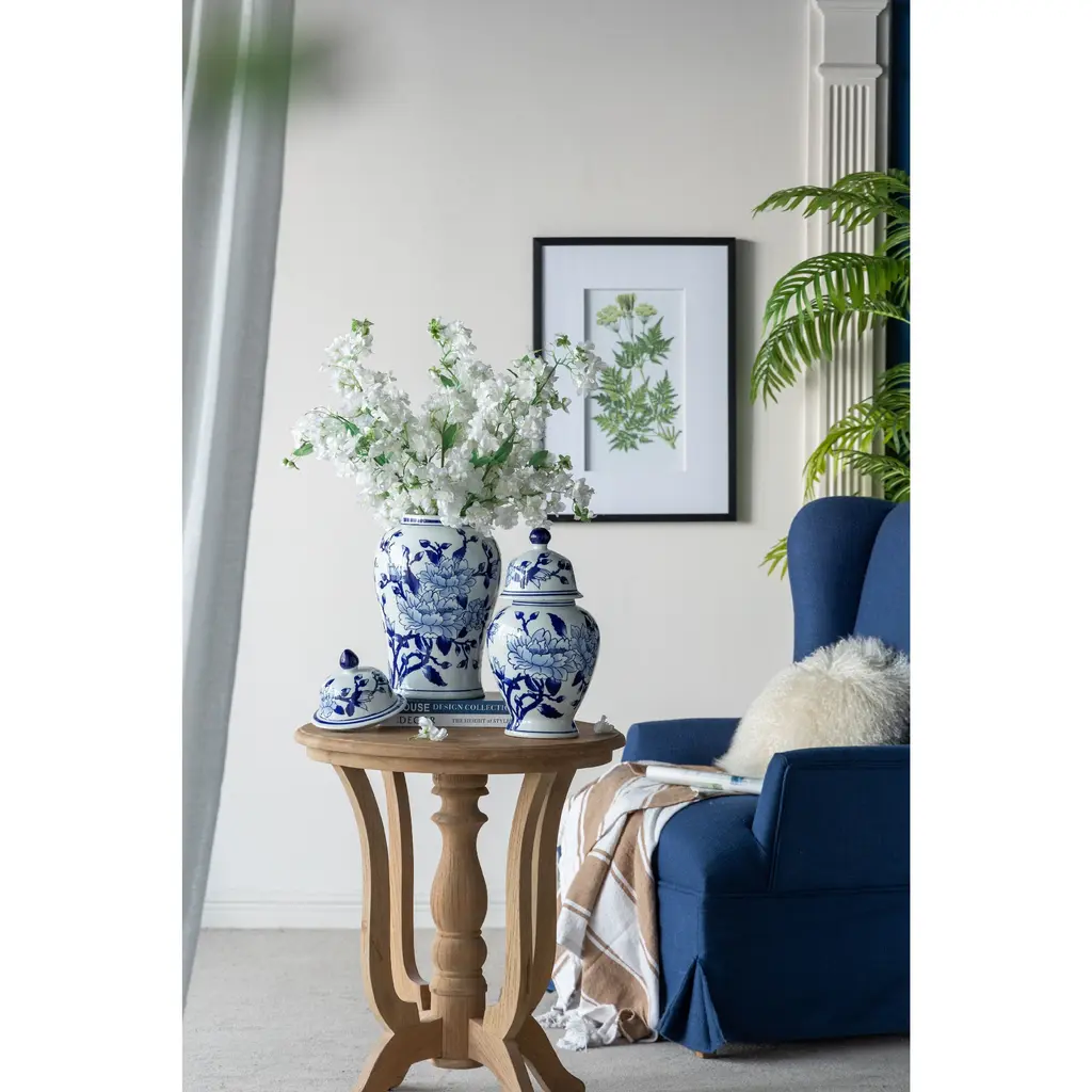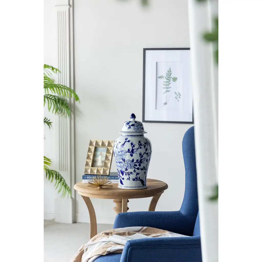Crafted from 100% crisp porcelain, this artistic ginger jar draws inspiration from Ming Dynasty designs to create a timeless yet functional home accent piece. Standing 18 tall, it will introduce a vibrant touch to any room in your home either as decorative storage, a standalone centerpiece, or even as a vessel for a colorful flower arrangement.