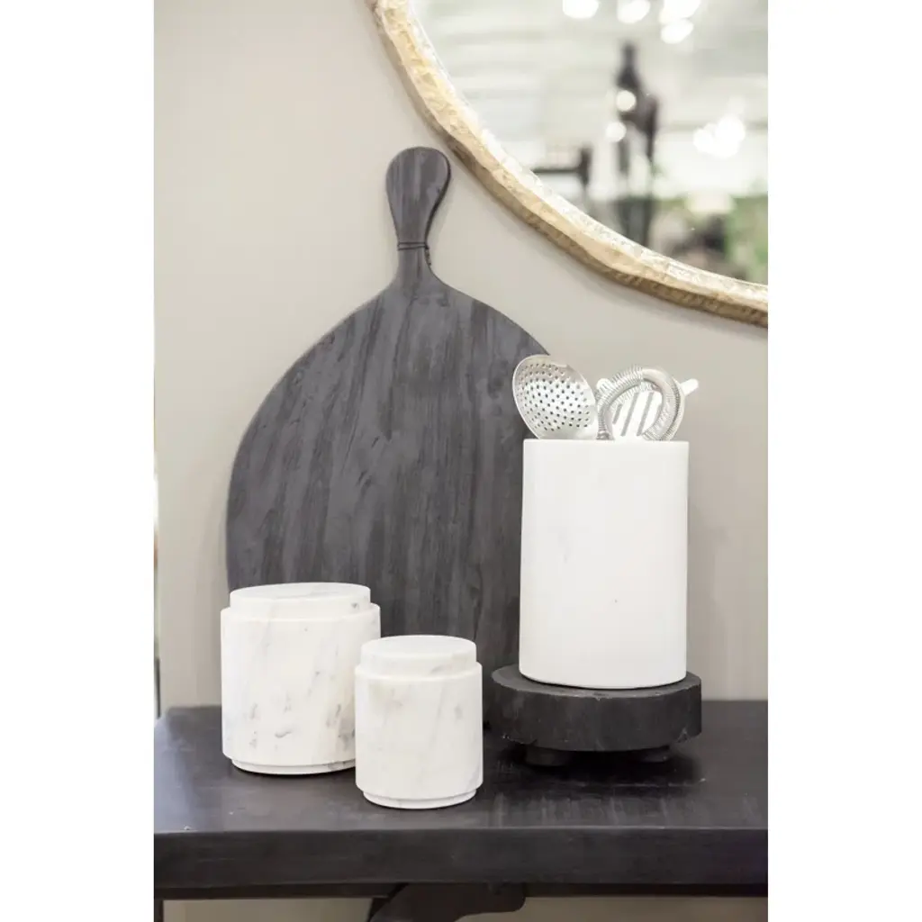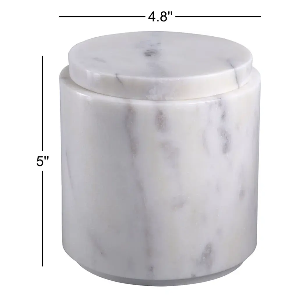 Level up your accessories. Crafted from solid marble, our canister instantly elevates your kitchen setup. It's safe to use with food, making this jar perfect for storing herbs and spices. A clean white hue with gray veining makes for easy mixing and matching with your decor. Plus, this versatile pieced doubles as a trinket or jewelry holder on your vanity.