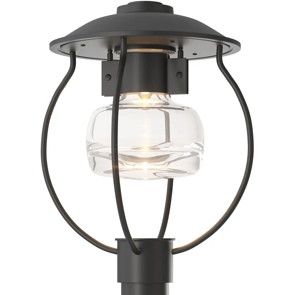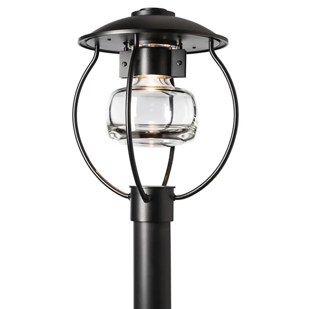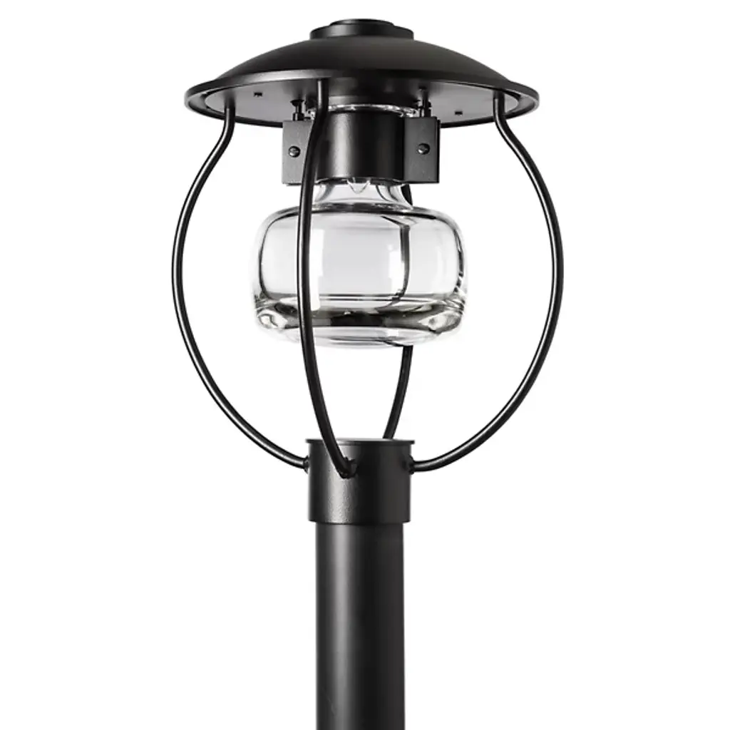 Smooth, modern lighting design inspired by the iconic fruit jar. The Mason Outdoor Post Light by Hubbardton Forge features a substantial glass shade with a round shape and heavy bottom that pools light below. The shade is held aloft within a durable aluminum frame and topped by a wide round roof. The thick glass and weatherproof Coastal Outdoor finish on the metal components ensure enduring style and long-lasting light at the end of a driveway, pathway or other outdoor space. Post not included.