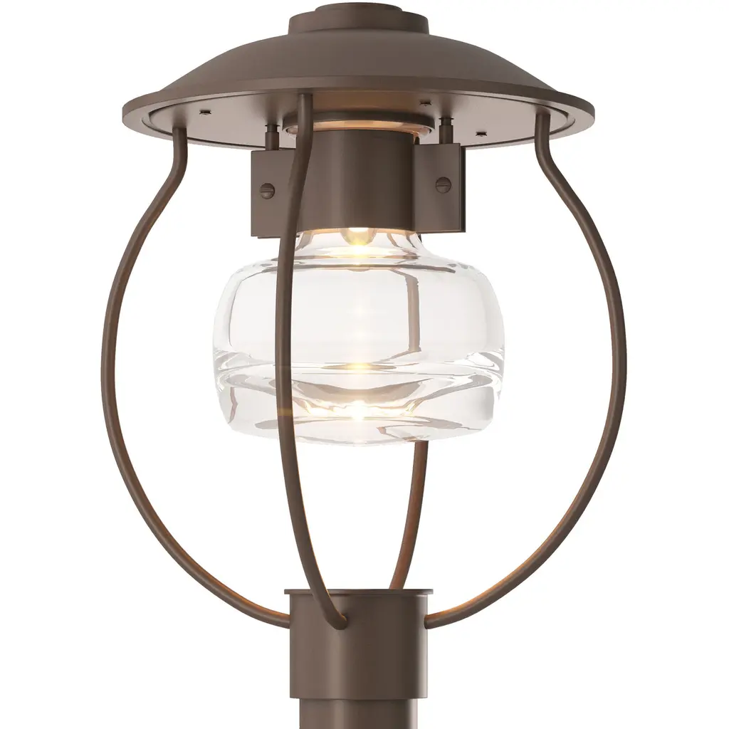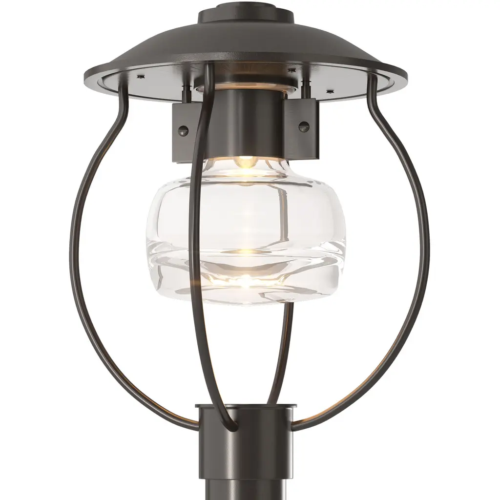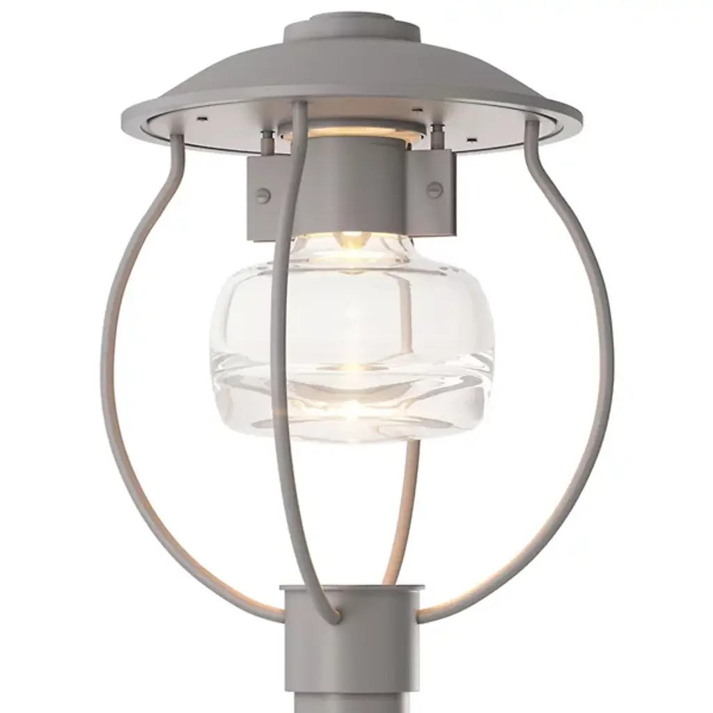 Smooth, modern lighting design inspired by the iconic fruit jar. The Mason Outdoor Post Light by Hubbardton Forge features a substantial glass shade with a round shape and heavy bottom that pools light below. The shade is held aloft within a durable aluminum frame and topped by a wide round roof. The thick glass and weatherproof Coastal Outdoor finish on the metal components ensure enduring style and long-lasting light at the end of a driveway, pathway or other outdoor space. Post not included.