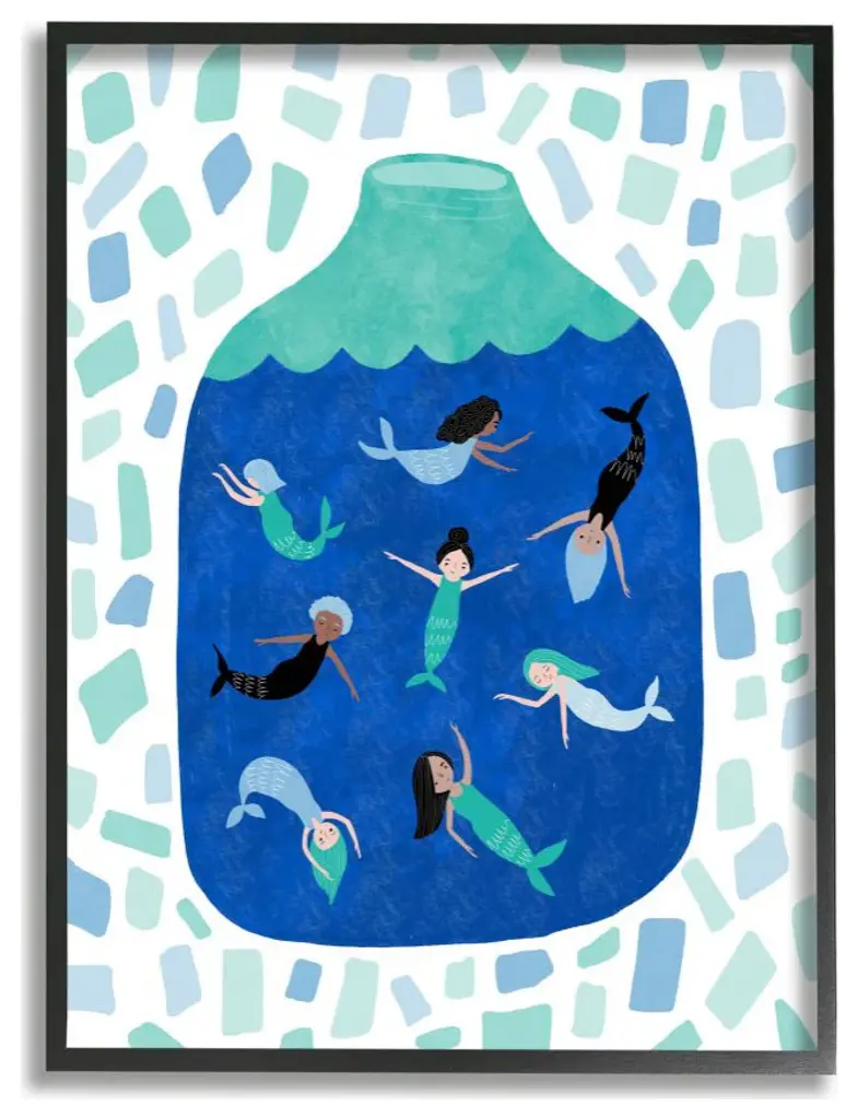 Mermaids In Glass Jar Mythological Aquatic Illustration24x30