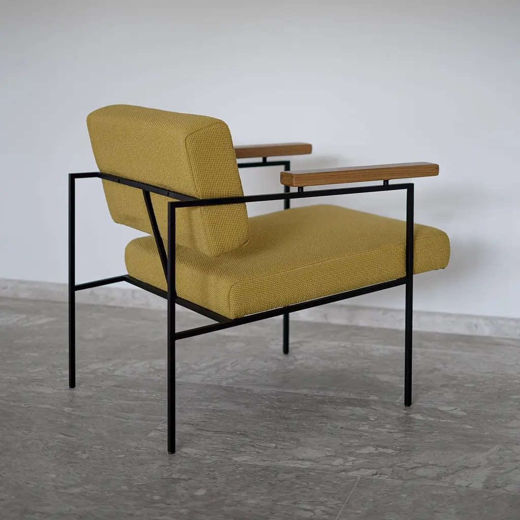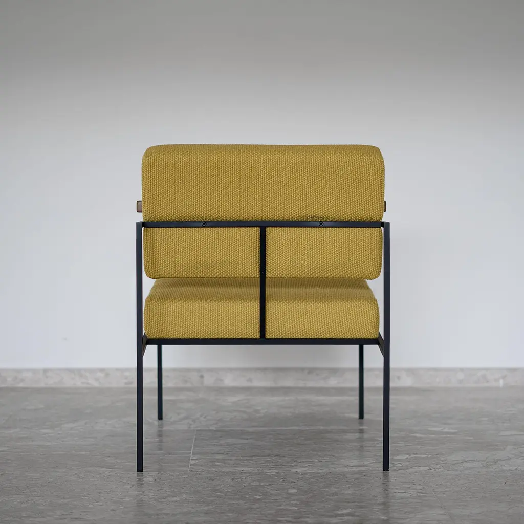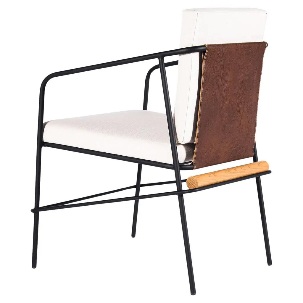 Helena Armchair by Samuel Lamas, 2022Introducing the Helena Armchair, an award-winning minimalist masterpiece designed by Samuel Lamas. This chair is crafted with an architectural and geometric approach, aiming to create a simple yet sophisticated piece with pure geometric shapes. The solid iron square crossbars form a perfect junction for the offset profiles, sketching the space aerially and balancing volumetric rationality with the natural leather upholstery.Award Recognition:DNA Paris Design Awards 2020: Winner in FurnishingBibliography:Magazine Casa Vogue Brasil, June 2017, p.81Auction PIASA Design + Art do Brasil 2017, Paris, FranceMagazine Casa e Jardim, March 2018Key Features:Materials: Premium Solid Iron and Natural LeatherAesthetic: Light and simple, with a focus on geometric and essential designDesign: Contemporary minimalist style that blends strength and eleganceCustomization Options:Fabric Choices: Available in various fabrics, including natural leather, linen, canvas, wool, and suedeMetal Frame: Customizable in your desired colorAvailability:In Stock: 4 units available for immediate purchaseCare Instructions:To maintain the pristine condition of your Helena Armchair, regularly dust with a soft, dry cloth. For deeper cleaning, use a mild detergent and a damp cloth, ensuring the chair is completely dry before use. Avoid prolonged exposure to direct sunlight and harsh weather conditions to preserve the color and material integrity.Shipping & Returns:This item is available for immediate purchase and delivery. Please contact us for detailed information on shipping and delivery options. Note that custom orders are non-returnable, reflecting the personalized attention to detail and craftsmanship invested in each piece.Elevate your living space with the Helena Armchair, a perfect blend of modern Brazilian design and minimalist elegance. Enjoy the timeless beauty and functionality of this award-winning piece. Each chair is crafted with precision and care to meet your unique style preferences.