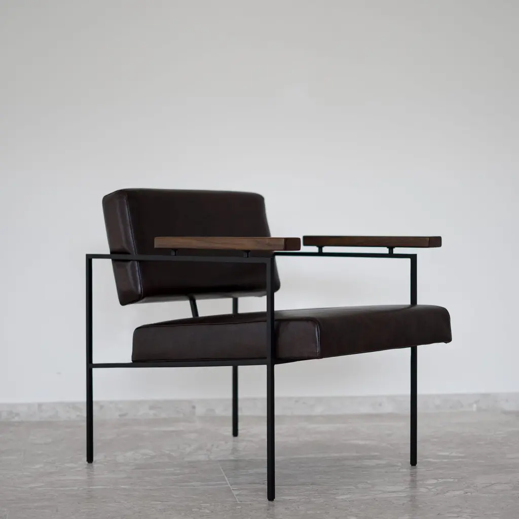 Helena Armchair by Samuel Lamas, 2022Introducing the Helena Armchair, an award-winning minimalist masterpiece designed by Samuel Lamas. This chair is crafted with an architectural and geometric approach, aiming to create a simple yet sophisticated piece with pure geometric shapes. The solid iron square crossbars form a perfect junction for the offset profiles, sketching the space aerially and balancing volumetric rationality with the natural leather upholstery.Award Recognition:DNA Paris Design Awards 2020: Winner in FurnishingBibliography:Magazine Casa Vogue Brasil, June 2017, p.81Auction PIASA Design + Art do Brasil 2017, Paris, FranceMagazine Casa e Jardim, March 2018Key Features:Materials: Premium Solid Iron and Natural LeatherAesthetic: Light and simple, with a focus on geometric and essential designDesign: Contemporary minimalist style that blends strength and eleganceCustomization Options:Fabric Choices: Available in various fabrics, including natural leather, linen, canvas, wool, and suedeMetal Frame: Customizable in your desired colorAvailability:In Stock: 4 units available for immediate purchaseCare Instructions:To maintain the pristine condition of your Helena Armchair, regularly dust with a soft, dry cloth. For deeper cleaning, use a mild detergent and a damp cloth, ensuring the chair is completely dry before use. Avoid prolonged exposure to direct sunlight and harsh weather conditions to preserve the color and material integrity.Shipping & Returns:This item is available for immediate purchase and delivery. Please contact us for detailed information on shipping and delivery options. Note that custom orders are non-returnable, reflecting the personalized attention to detail and craftsmanship invested in each piece.Elevate your living space with the Helena Armchair, a perfect blend of modern Brazilian design and minimalist elegance. Enjoy the timeless beauty and functionality of this award-winning piece. Each chair is crafted with precision and care to meet your unique style preferences.