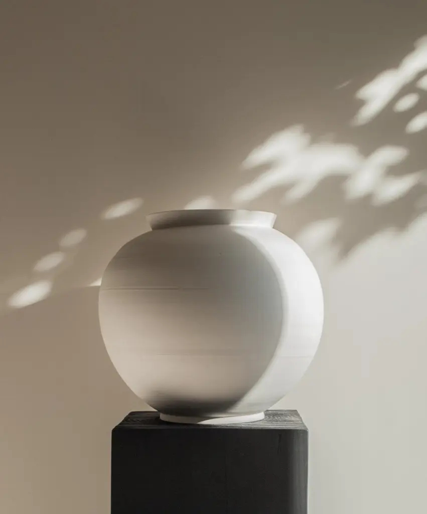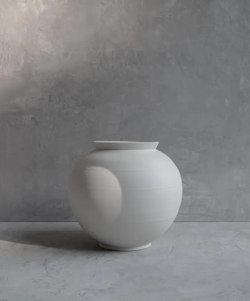 Moon jar by Bicci de' Medici StudioDimensions: Diameter 30cm x height 30cmMaterials: Ceramic. Porcelain. Pigment.Technique: Hand-crafted. Freeform. Glazed. Bicci de’ Medici manufactures exclusive design pieces, formed by hand, conceived by emotion. Respecting craftsmanship and focussing on natural materials such asstone, wood, loam, organic fabrics, and porcelain. A Belgian design company delivering handmade furniture, special pieces, and decoration for a unique audience, tailored to fit their style and spirit.Providing them with serene and distinguished objects, both new and old to ensure one-of-a-kind realizations. We take these projects seriously, that’s why we offer custom-made solutions, furnishings, and accessories. Our aim is to create rare and restrictive pieces which make your environment notable but in a subtle way. Bicci de’ Medici is available at selected dealers and (interior) architects.