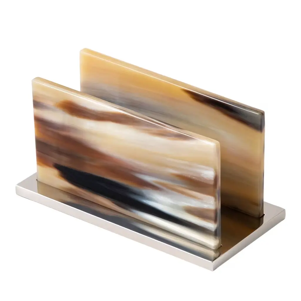 - Handcrafted coaster set made of wood and ojo de pajaro veneer. - Reminiscent of birds- eye maple, Ojo de Pajaro veneer is a hybrid of natural beauty and artful technique. - Polished German silver holders.