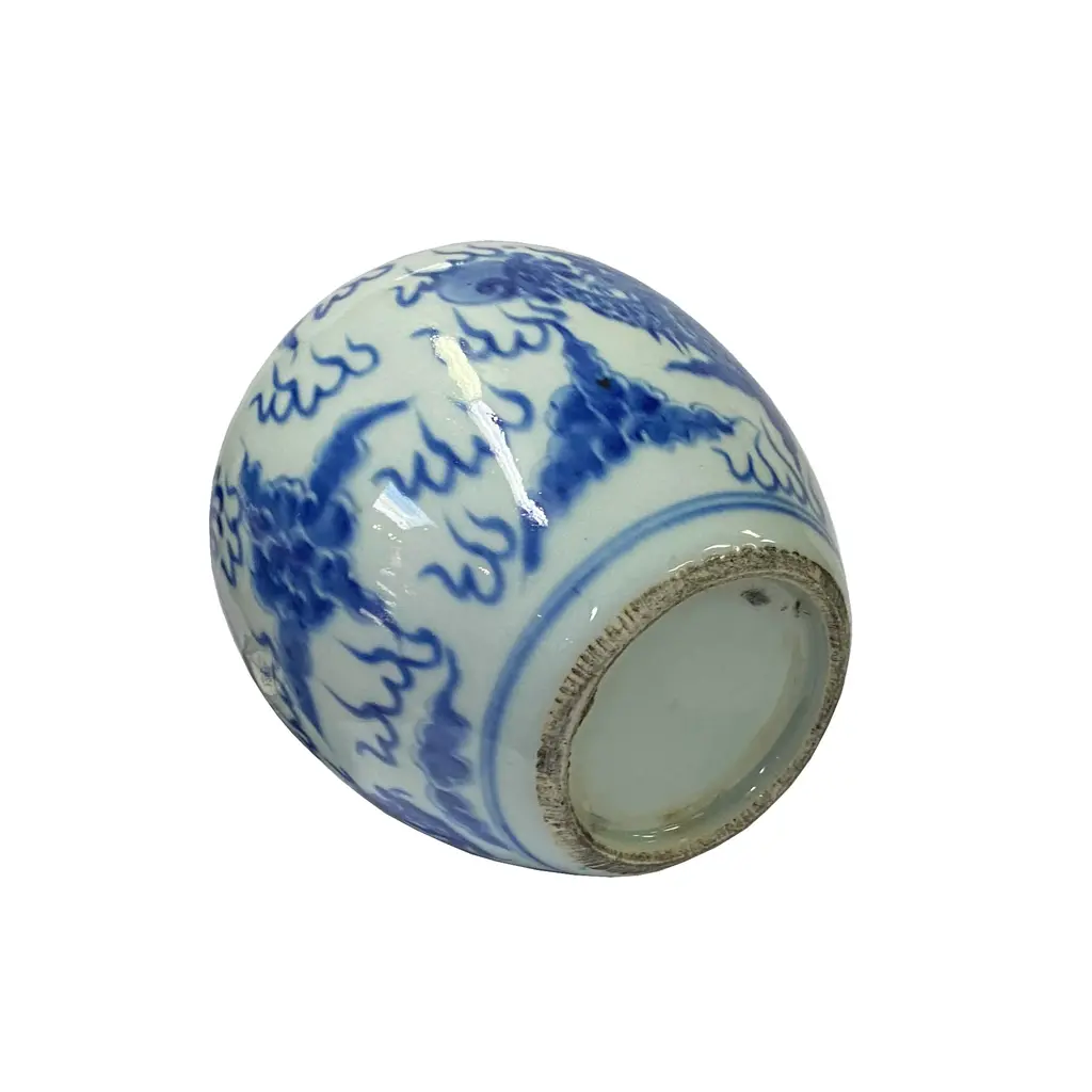 Oriental Handpaint Dragon Small Blue White Porcelain Ginger Jar