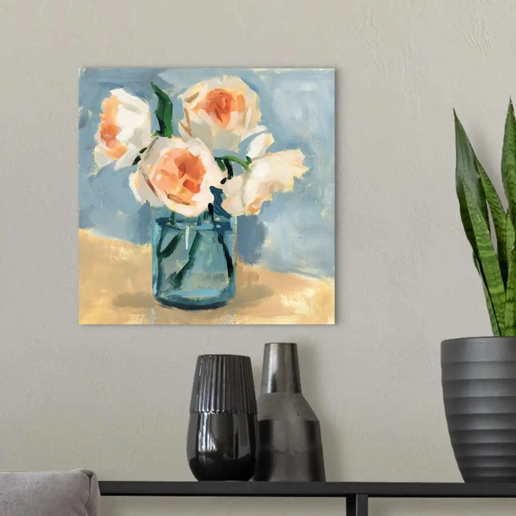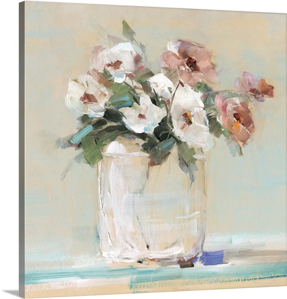 Peonies In Mason Jar II wall art for home and office decor. Discover canvas art prints, photos, mural, big canvas art and framed wall art in GreatBigCanvas.com's varied collections.