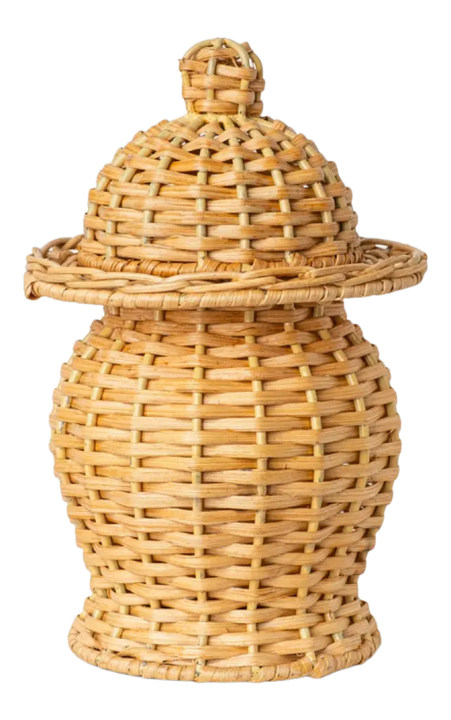 Perla Low Pink And Natural Wicker Jar With Wood Lid