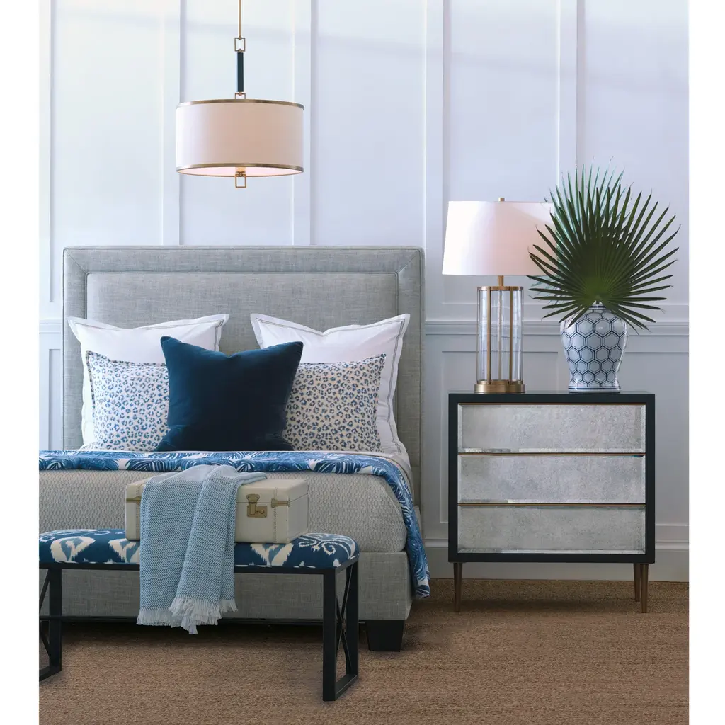 This classic temple jar  by Port 68 features a Kenilworth honeycomb pattern in blue or brown on white porcelain. Perfect in pairs on the mantle or grouped on a table.