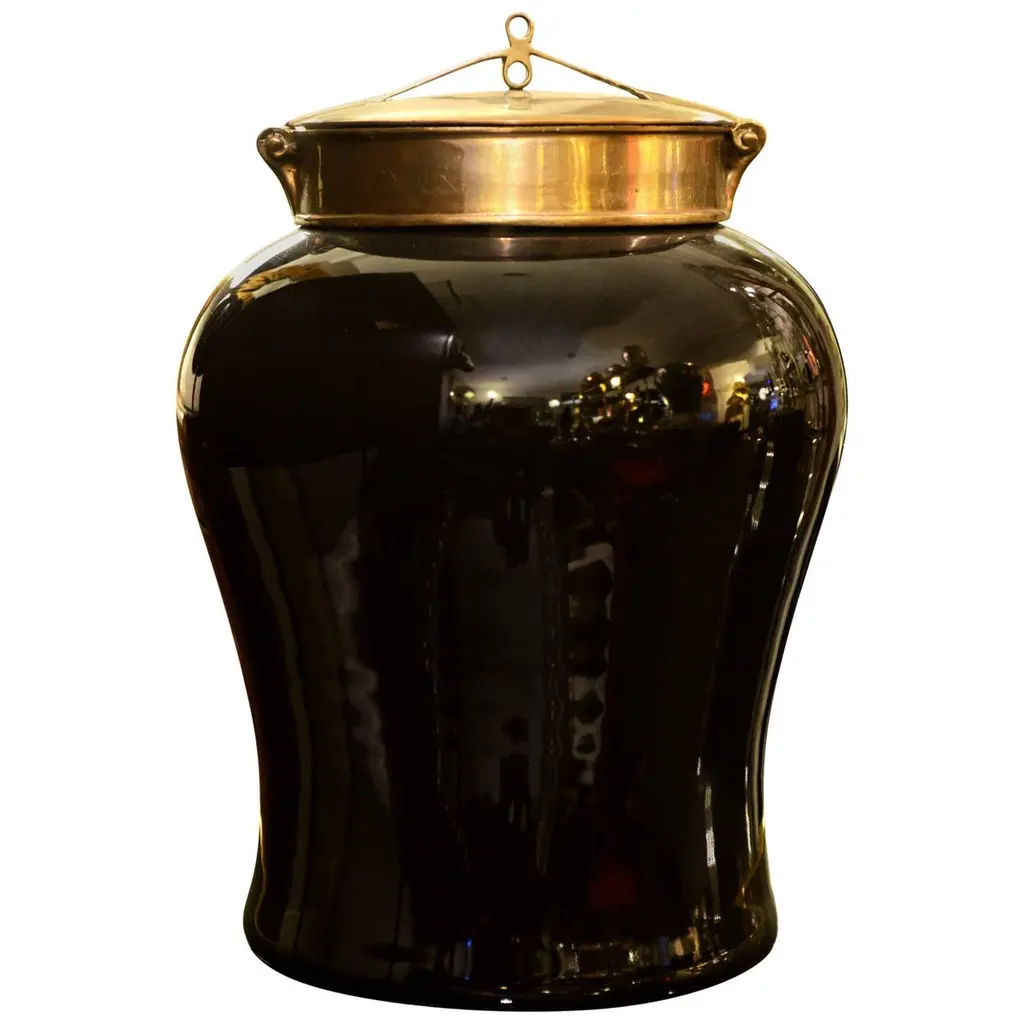 This vibrant glazed porcelain jar by Port 68 is accented with solid brass cap and bamboo finial. Available in vibrant shades of emerald green, ruby red and turquoise.