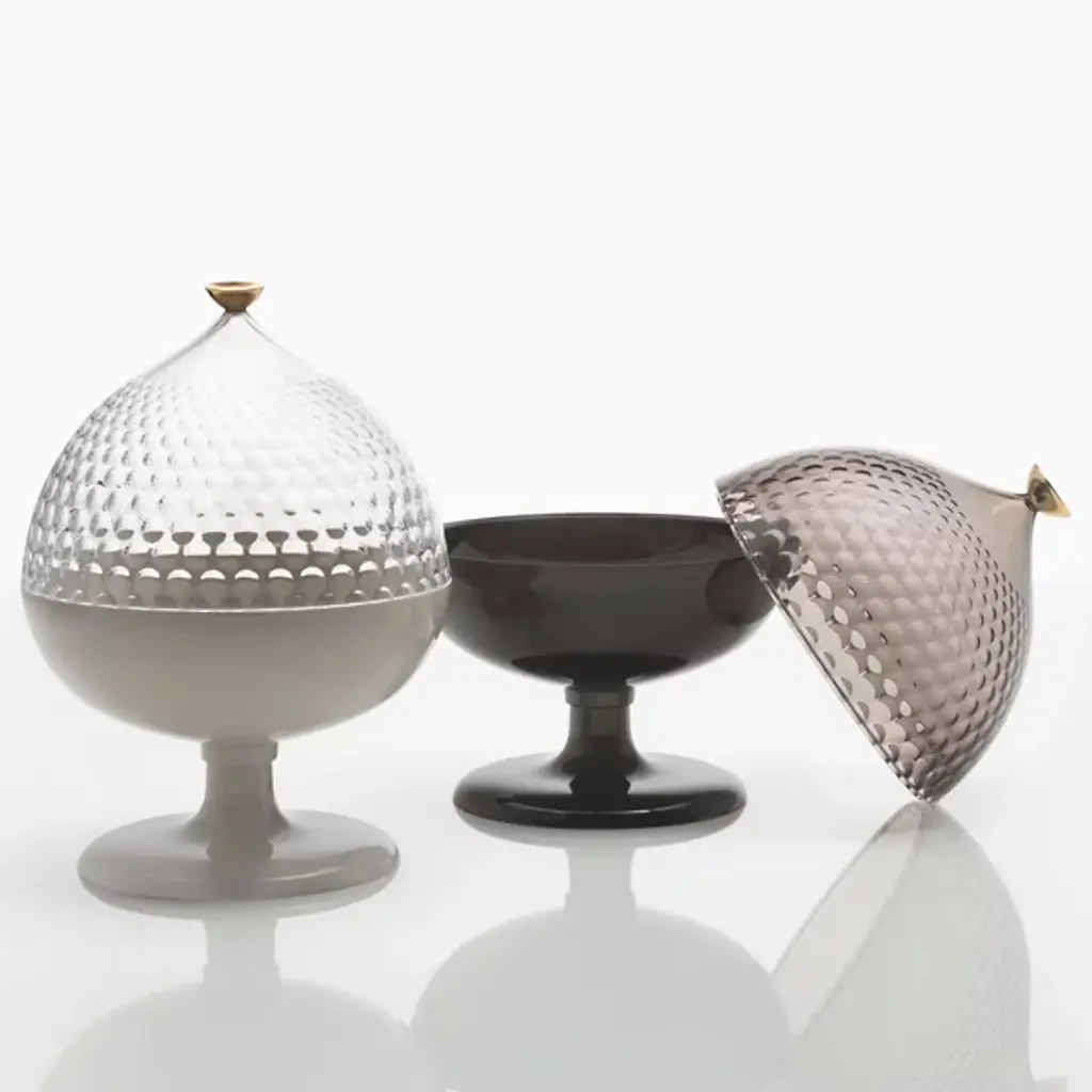 Add a stylish touch to the décor of the smaller surfaces in your home with the Pumo Jar from Kartell. Designed by Fabio Novembre, this multi-purpose container is reminiscent of a traditional Apulian object of good omen as it brings comfort and grace to the interior of your modern home.