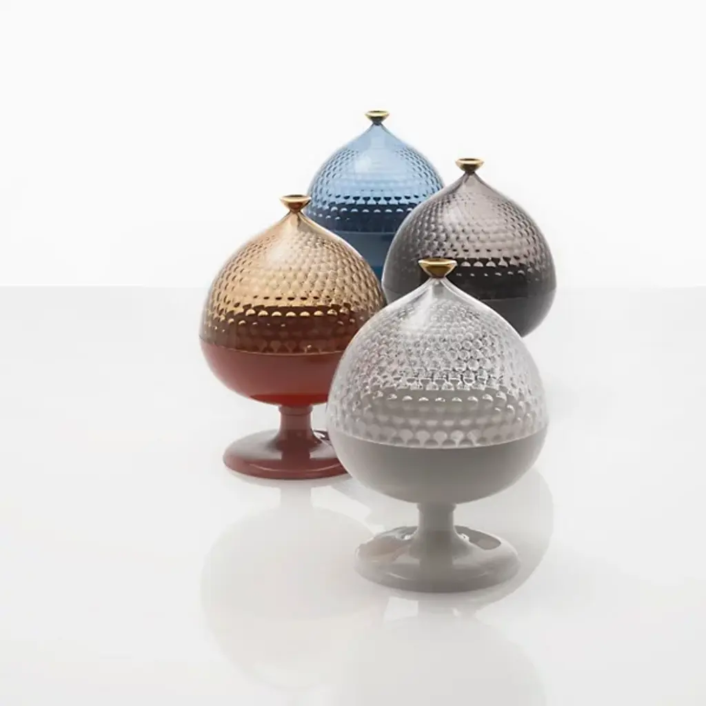 Add a stylish touch to the décor of the smaller surfaces in your home with the Pumo Jar from Kartell. Designed by Fabio Novembre, this multi-purpose container is reminiscent of a traditional Apulian object of good omen as it brings comfort and grace to the interior of your modern home.