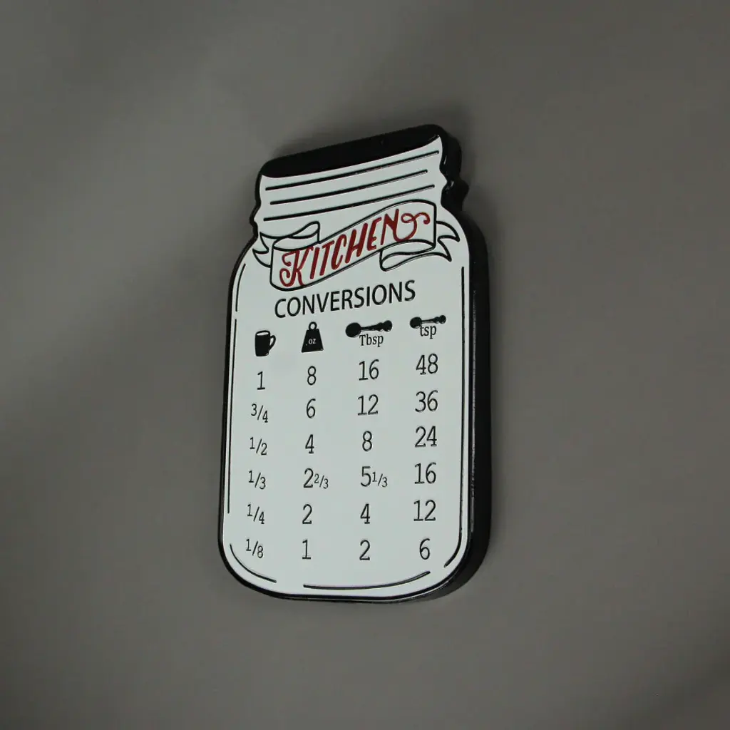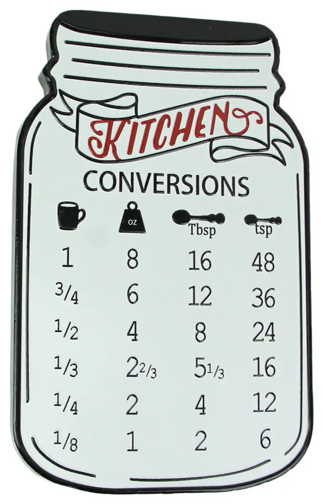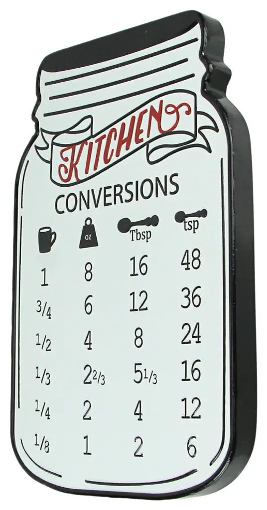 OVERALL SIZE - 10 Inches Long, 16 Inches High, 1 Inch DeepDURABLE MATERIAL - Crafted of Metal For Years of Maintenance Free DisplayBEAUTIFUL FINISH - Glossy Enamel PaintEASY INSTALL - Built-In Hanger on BackGREAT GIFT - For Yourself or For Friends and FamilyGive your kitchen wall a bit of retro style, while also helping with the creation of wonderful meals with this vintage-look measurement conversion metal wall hanging. Crafted of stamped metal and shaped like a canning jar, the wall hanging gives you conversion amounts from cups to ounces to teaspoons to tablespoons, so you''ll be able to get your recipe perfect. It mounts easily on your wall, using the single built-in loop hanger on the back. It measures 16 inches high, 10 inches long, and one inch thick. Rustic elegance and farmhouse flair beautifully blend into this functional piece of modern wall art.