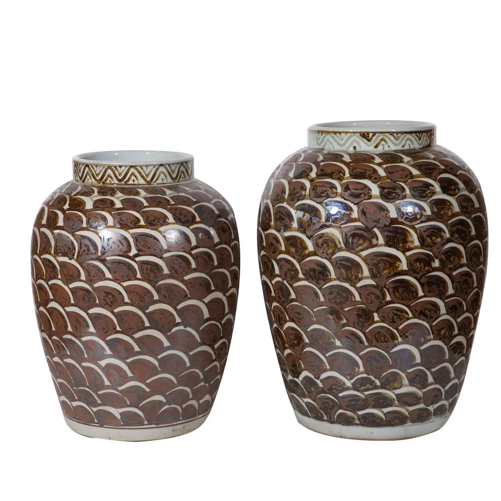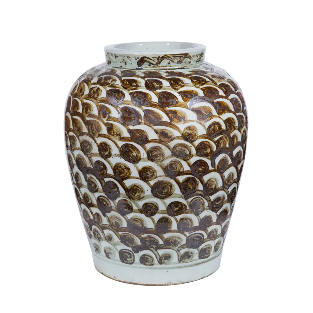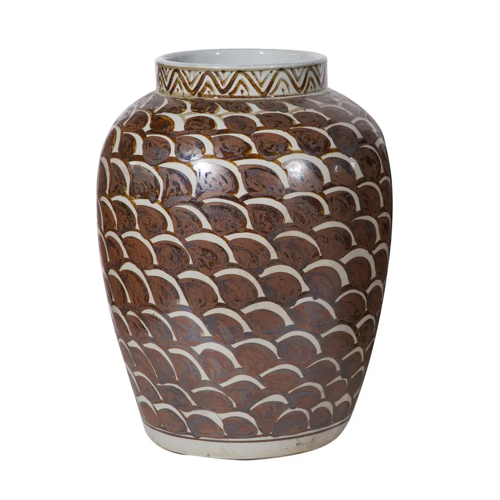 Rusty Brown Jar With Fish Scale Pattern By Legends Of Asia