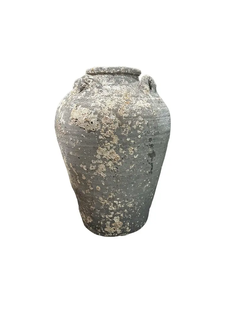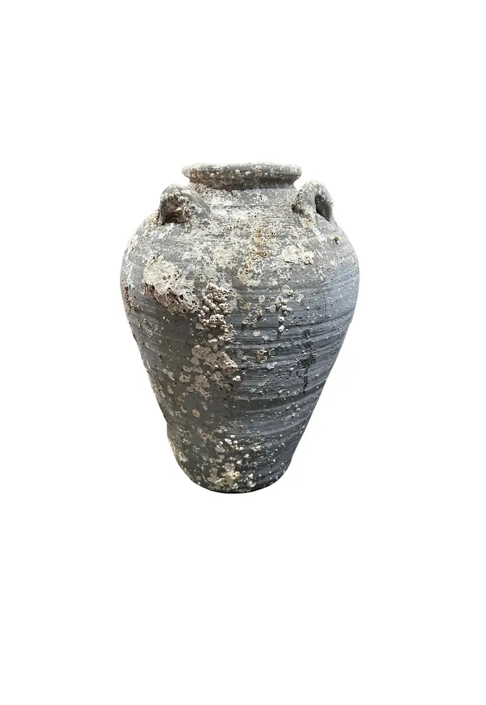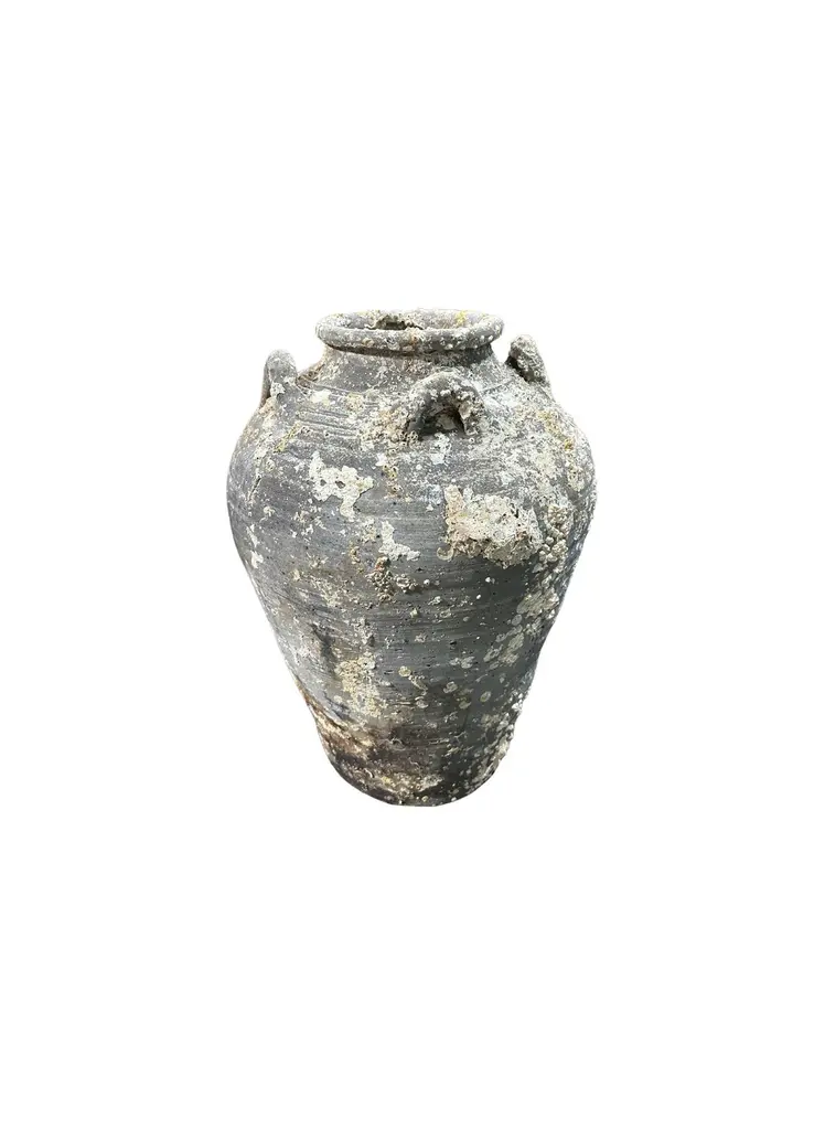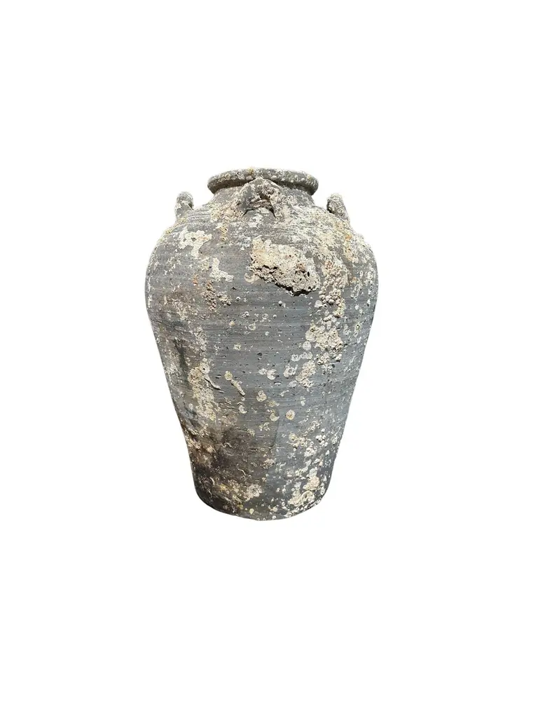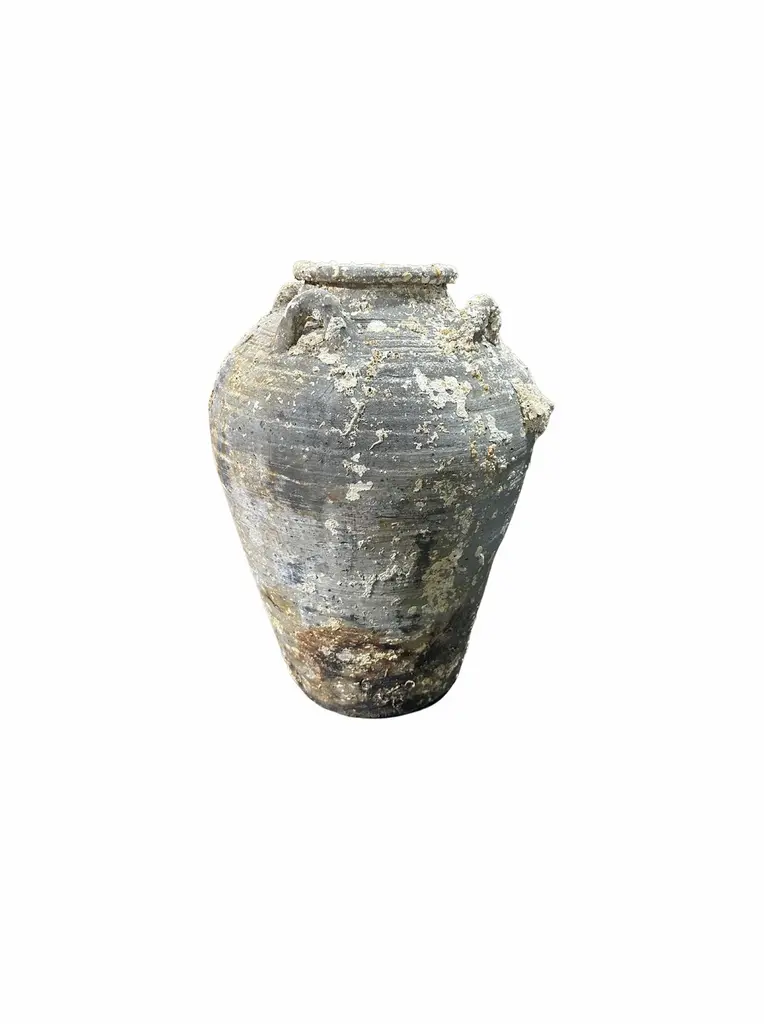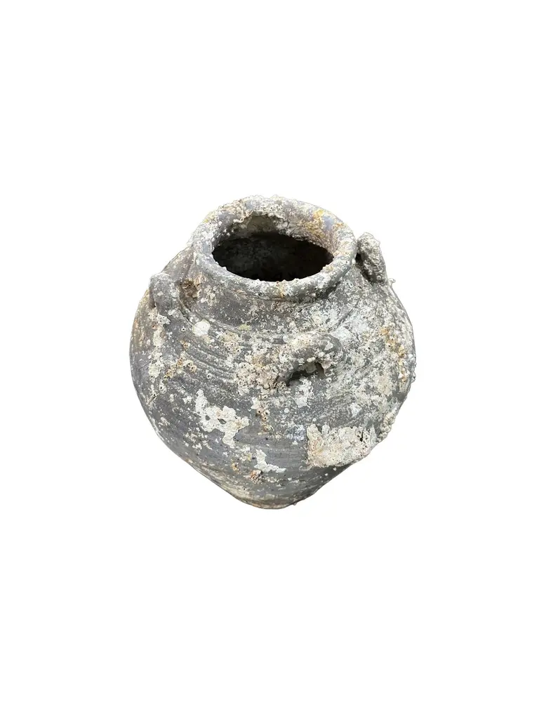 A wonderful example of a 16th Century Sawankhalok jar from a Shipwreck off the Coast of the Indonesian Island of Batam. Batam was one of the most substantial and influential ports in the South China Sea where an abundance of trade was conducted. This jar features natural marine wear and growth from its exposure beneath the sea for hundreds of years which adds to its charm. The jar originates from the Kingdom of Sukhothai, modern day Thailand. It is an iron glazed stoneware jar and features loops that wrap around the Jar’s shoulder. These loops were used to secure the lid to the jar and prevent the contents from leaking.