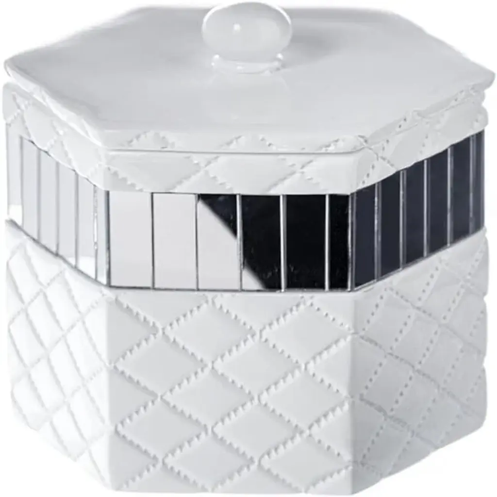 Crafted of porcelain with an embossed scale motif, this glossy white cotton jar makes an elegant addition to the vanity. Imported.