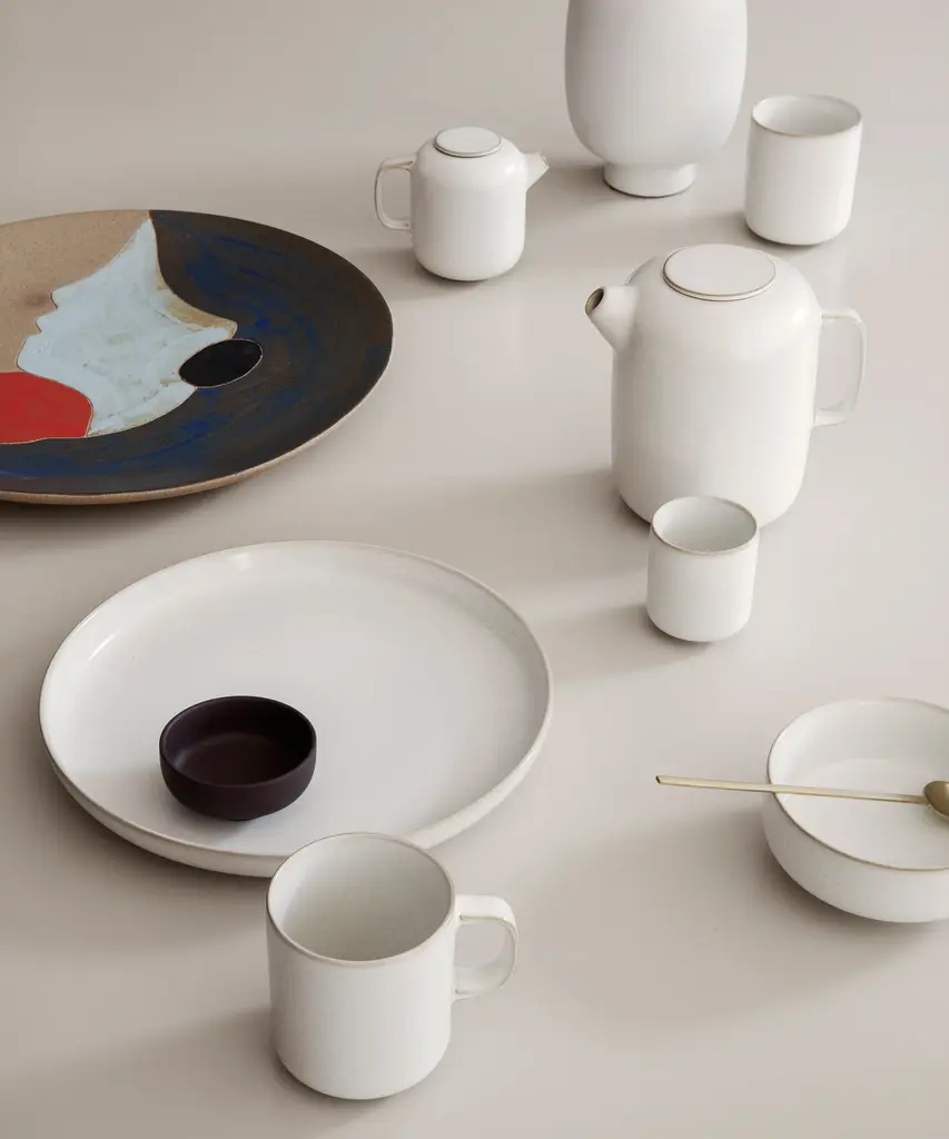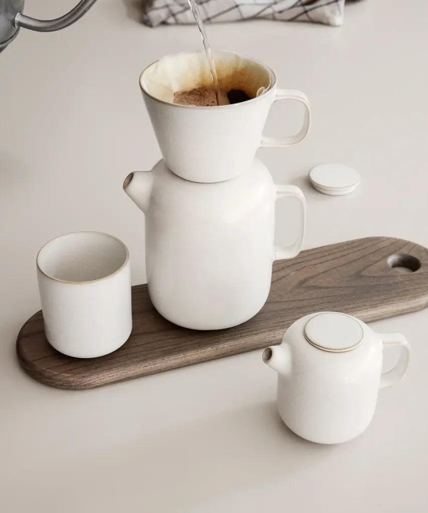 With its rounded shape, small pouring nozzle, and wide handle, the Sekki Milk Jar is perfect for pouring cream into your coffee or scouring your pancakes in warm maple syrup. The Sekki Series rediscovers the magic of traditional manufacturing through its cream-colored glazed clay with tiny grey speckles, a glorious surface, and a remarkable feel. Produced by the Copenhagen-based studio Ferm Living.