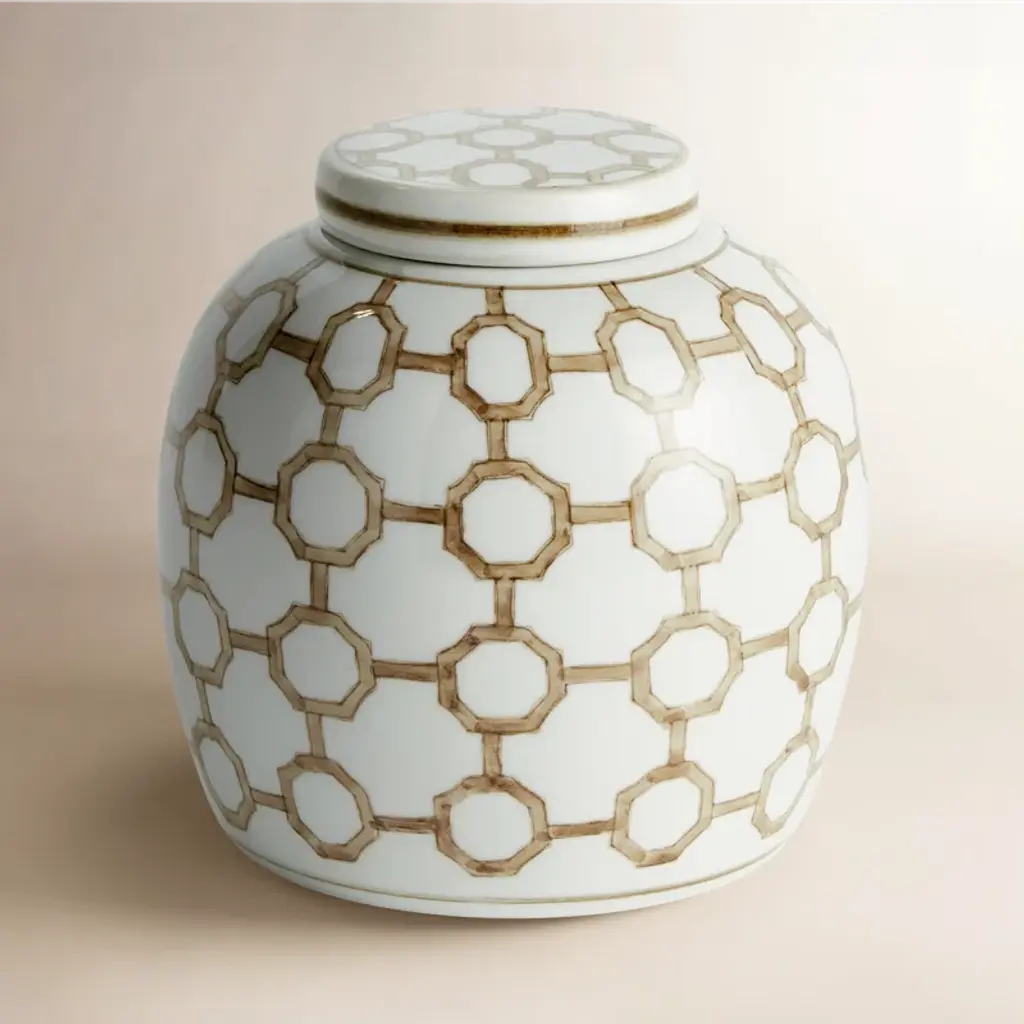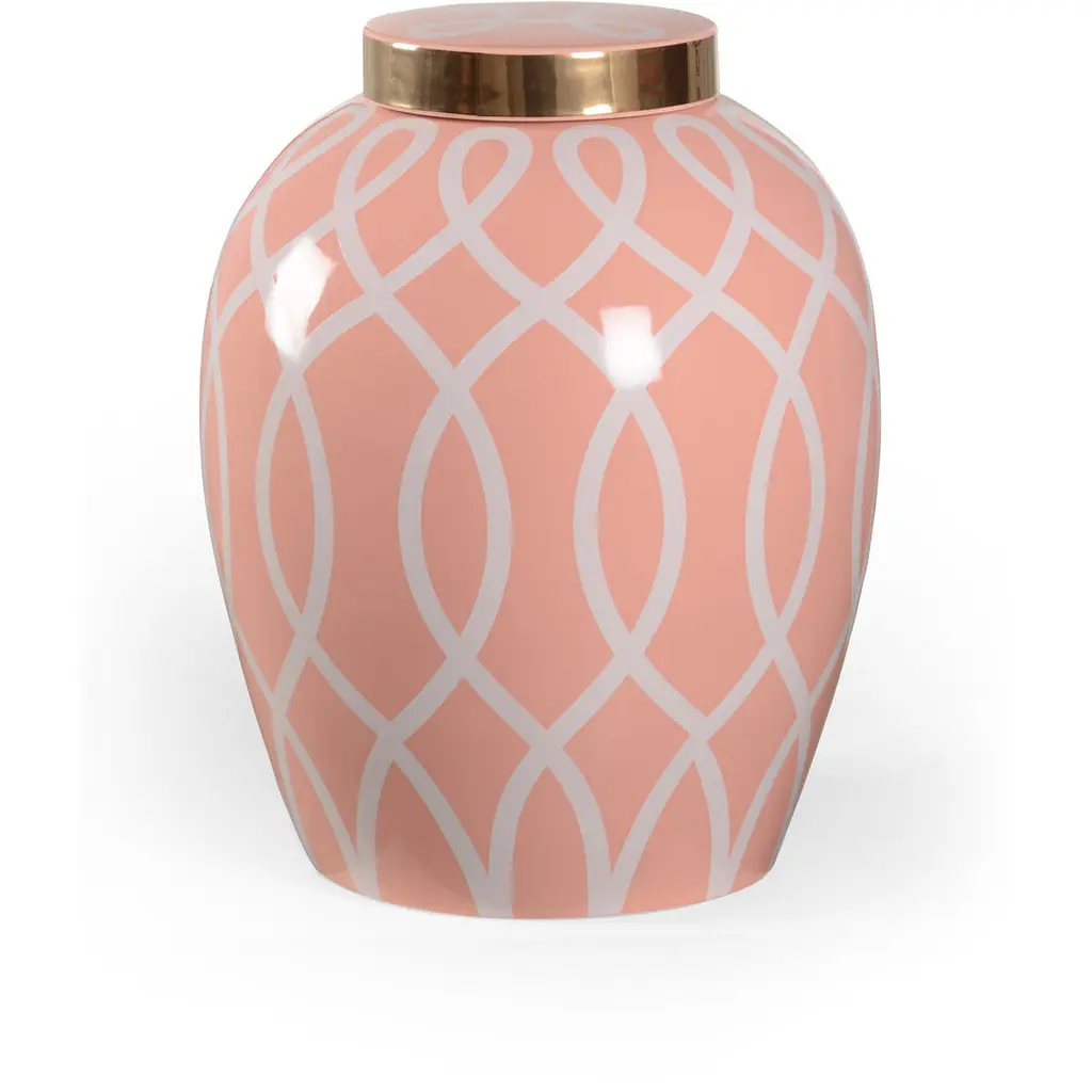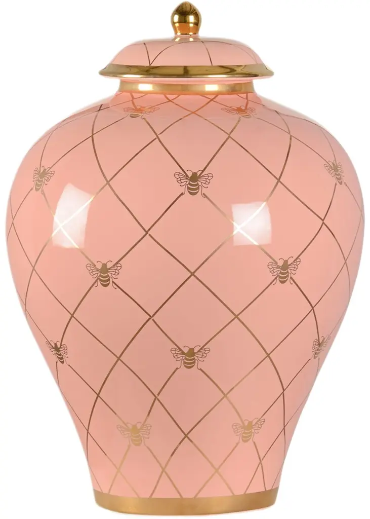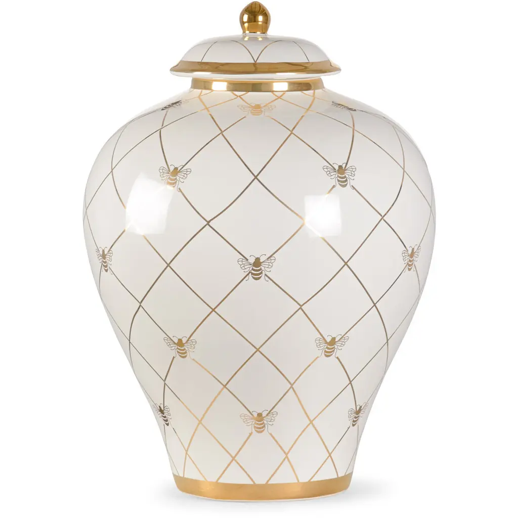 A Countertop Version Of A Ginger Jar Offering A Vibrant Color Palette With Metallic Satin Gold Detailing.