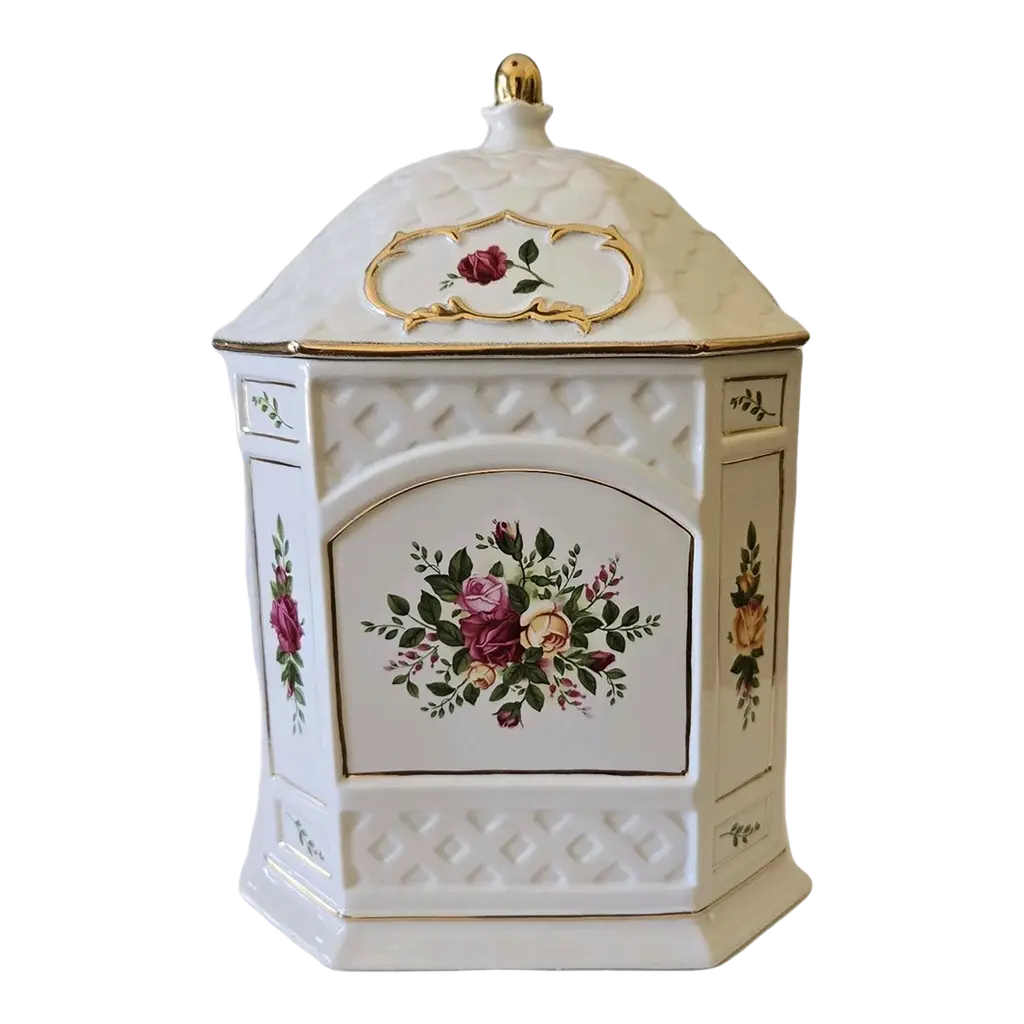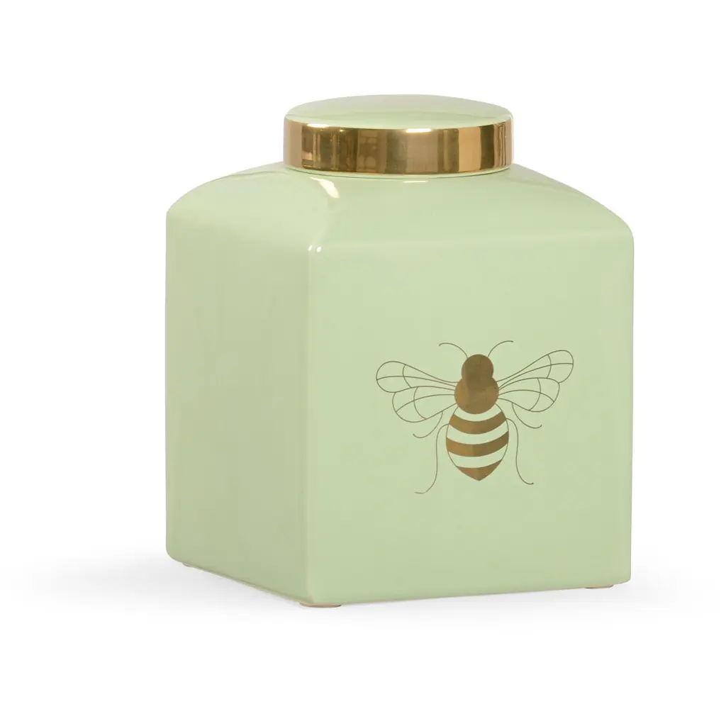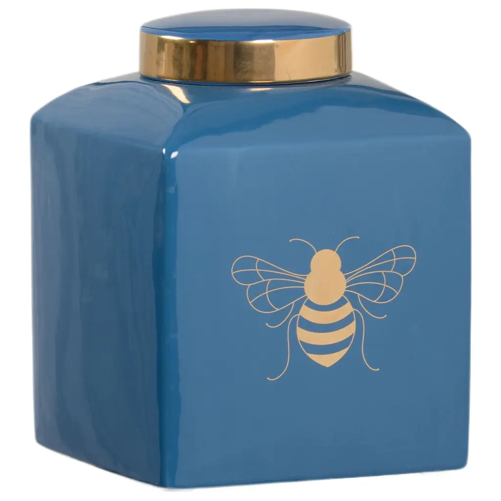 A Countertop Version Of A Ginger Jar Offering A Vibrant Color Palette With Metallic Satin Gold Detailing.