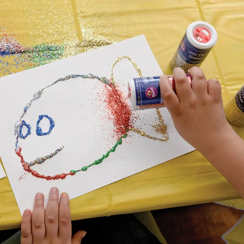 Spectra® Arts & Crafts Glitter, Clear, 16 oz., 1 Jar | Spectra Glitter Sparkling Crystals are high quality and are perfect for adding sparkle or bling to any art or craft project. Our hexagon-shaped, .04" plastic glitter crystals are non-toxic and certified with the AP seal. They come in convenient, no-mess closeable shaker-top jars, making them ideal for school and home use. Perfect for classroom art, slime making, posters, scrapbooking, and more. Includes one 16 oz jar of glitter.