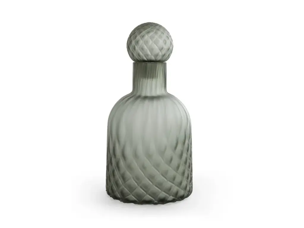 The Spring Breeze Bottle is a gorgeous tabletop accent crafted from art glass. The bottle displays verdant green tones interspersed with subtle flourishes of white, inspiring a tranquil atmosphere within any interior space.