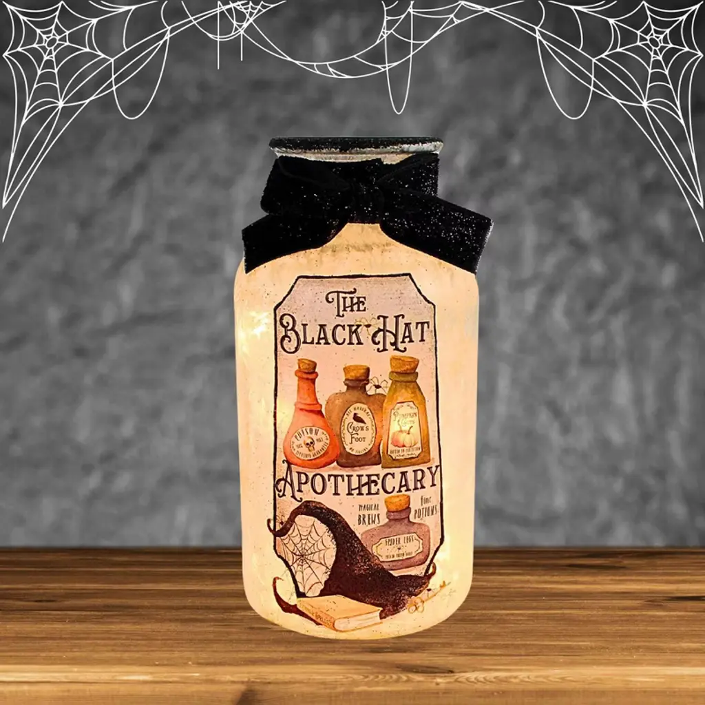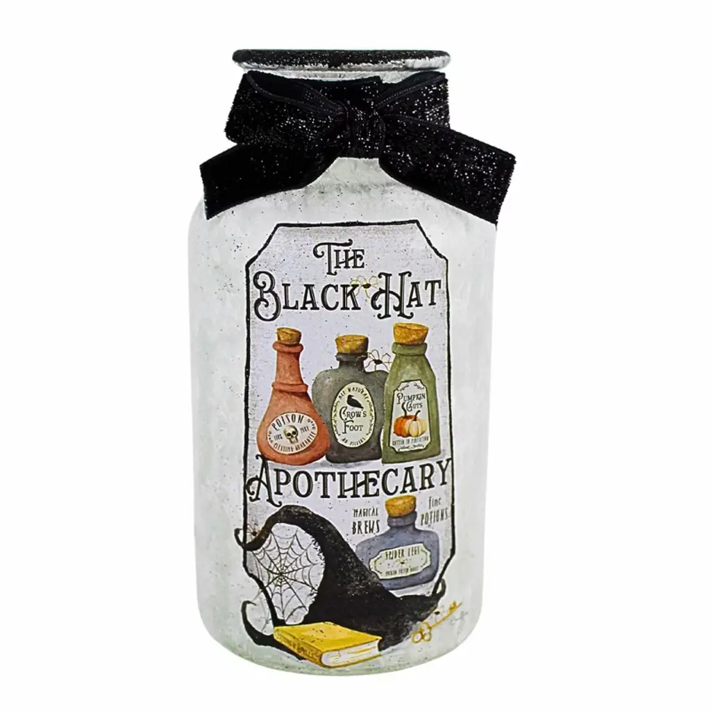 Stony Creek 6.5 Inch Hocus Pocus Small Glass Jar Lighted Halloween Lighted Glass Accent , Halloween Decor Lighted Halloween Jar (1pc)