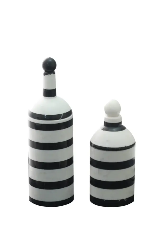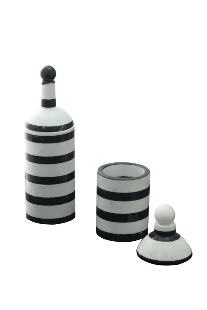 The marble Albion Jar features a bold and contrasting black and white striped pattern – perfect for a minimalist and contemporary space.