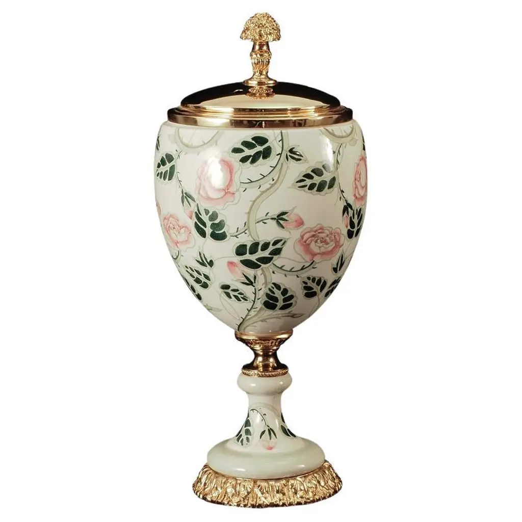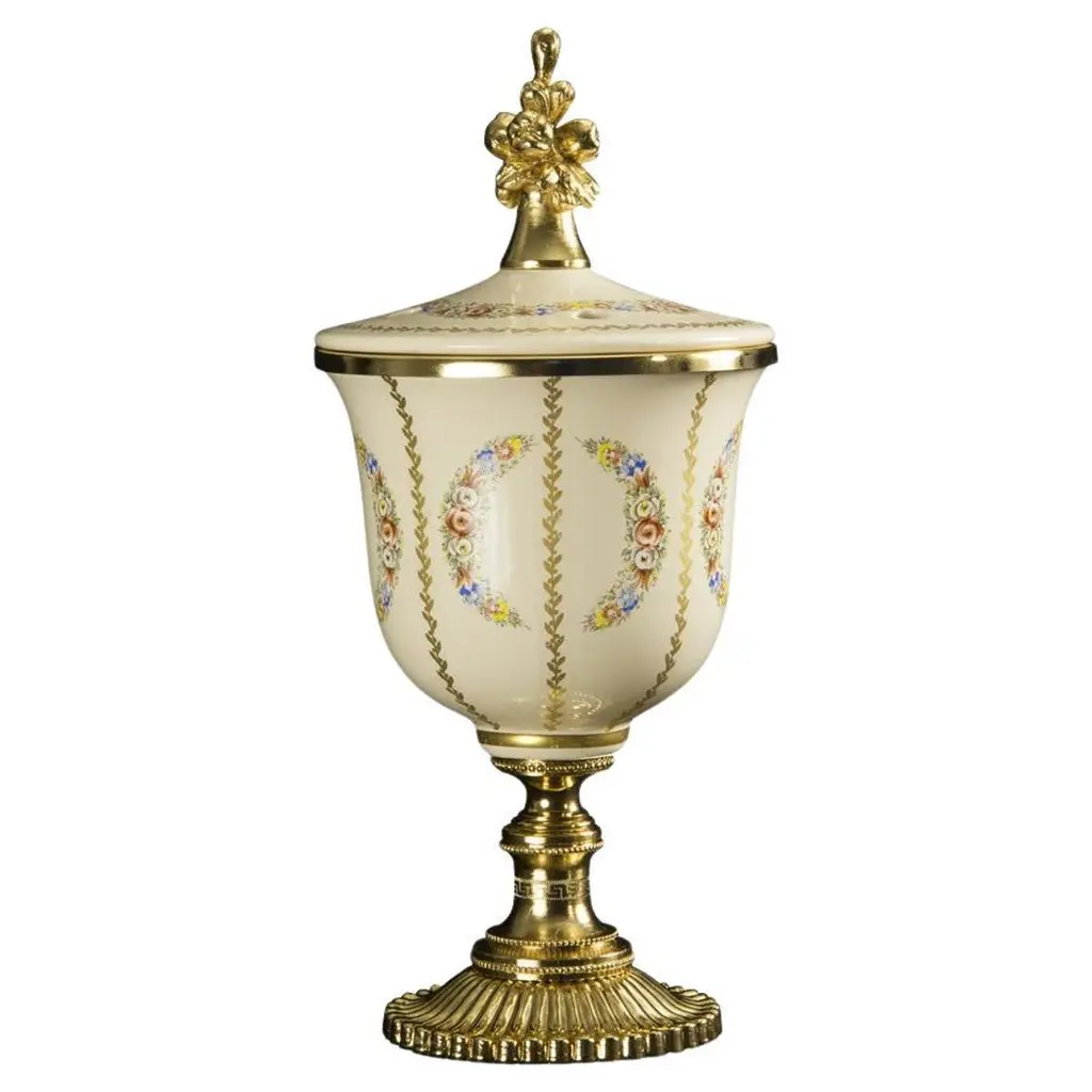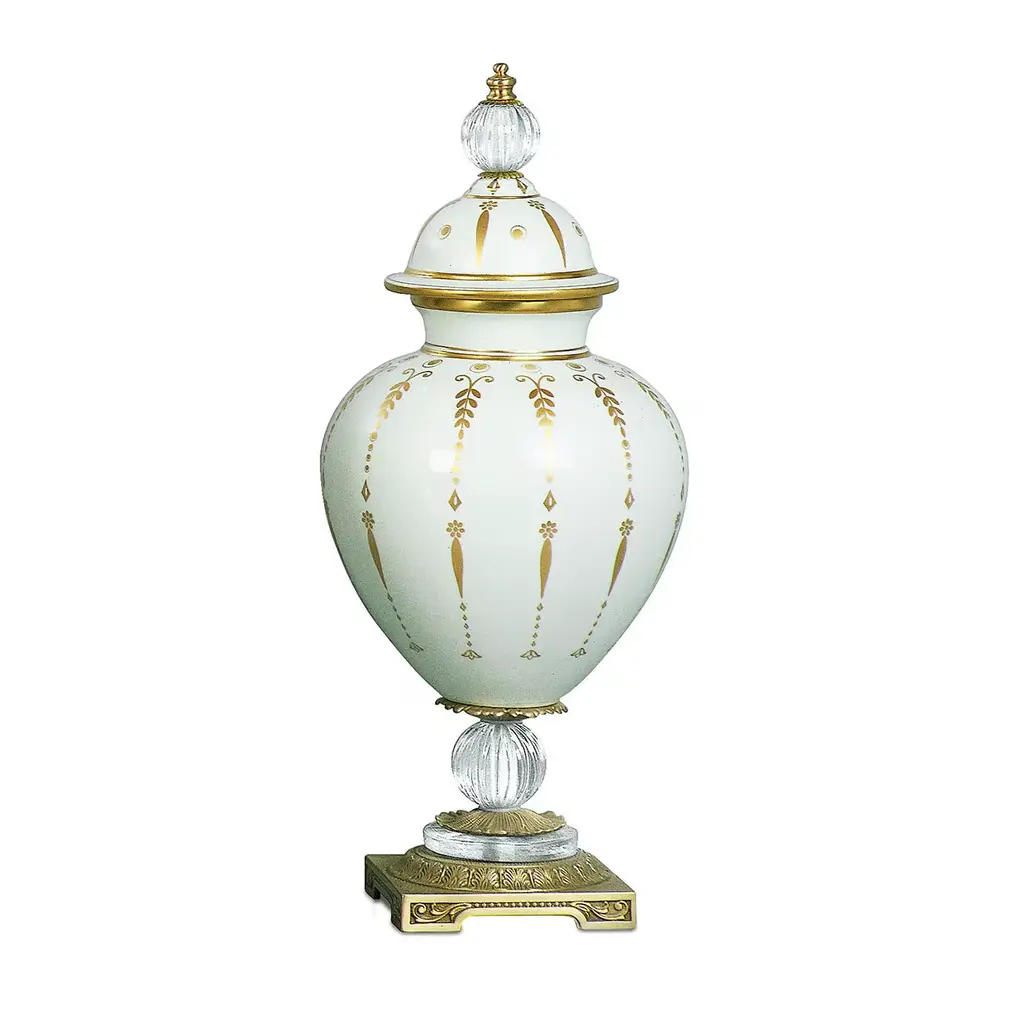 Indulge in the luxury of the TULIP ORMOLU GINGER JAR. This exquisite jar is a true work of art, intricately crafted with elegant tulip designs and finished with delicate gilding. The perfect addition to any sophisticated home, this jar is sure to elevate your space with its timeless beauty.