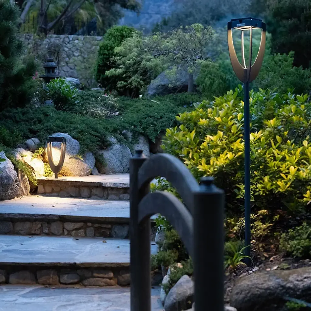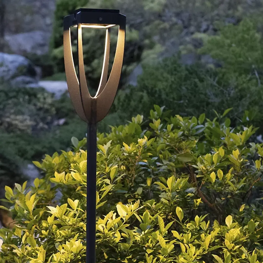 The Tulip Torch Outdoor Solar LED Post Light from Les Jardins is designed to harmonize with various landscape aesthetics, offering an elegant lighting solution that enhances outdoor spaces without overpowering their natural beauty. Its sleek, minimalist design and soft radiating light provide the perfect combination of decoration and functionality. It is ideal for illuminating pathways, walkways, and garden flora, which adds a warm, inviting ambiance. Crafted from durable aluminum, it ensures long-lasting performance, making it a stylish and sustainable addition to any garden.