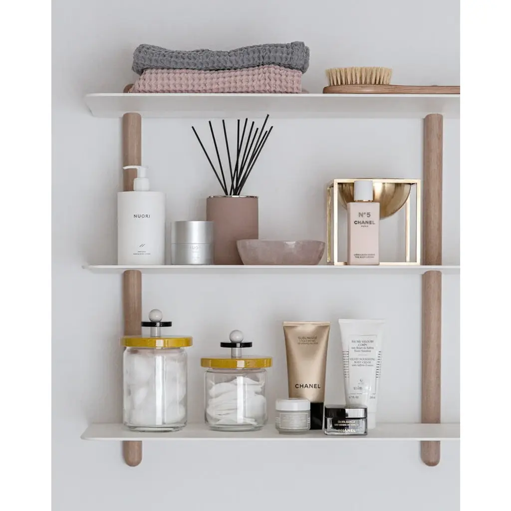 Alessi's ES16 kitchen jar from the Twergi collection is an extraordinarily expressive storage jar created by the legendary Italian designer Ettore Sottsass. Shaped like a small totem, the beechwood lid ensures an airtight seal for flour, sugar, pasta or anything you like to store in a glass jar. First launched in 1989, Alessi's Twergi collection consists of wooden objects inspired by the ancient tradition of woodturning. In Italy's woodwork-famous Strona Valley, the word "twergi" is local dialect for "elf". Elves were believed to be both mischief-makers and teachers, for example, in the craft of woodworking. Each item in the Twergi collection is made in Italy, with some parts crafted by hand on a lathe.