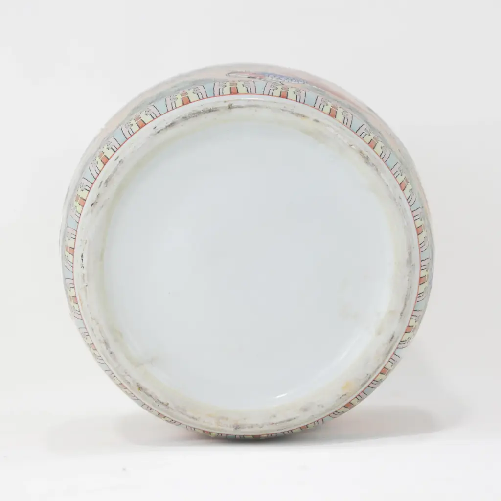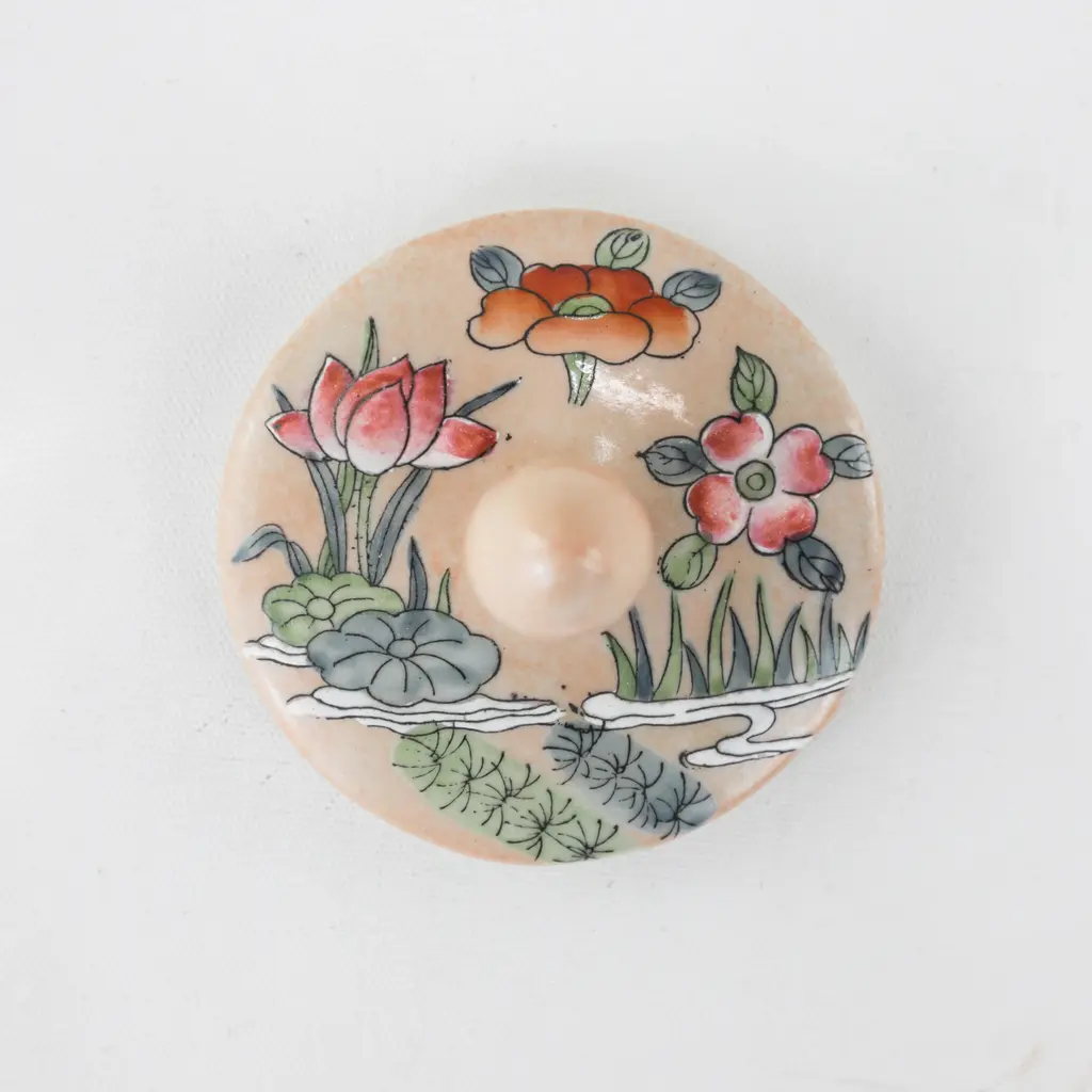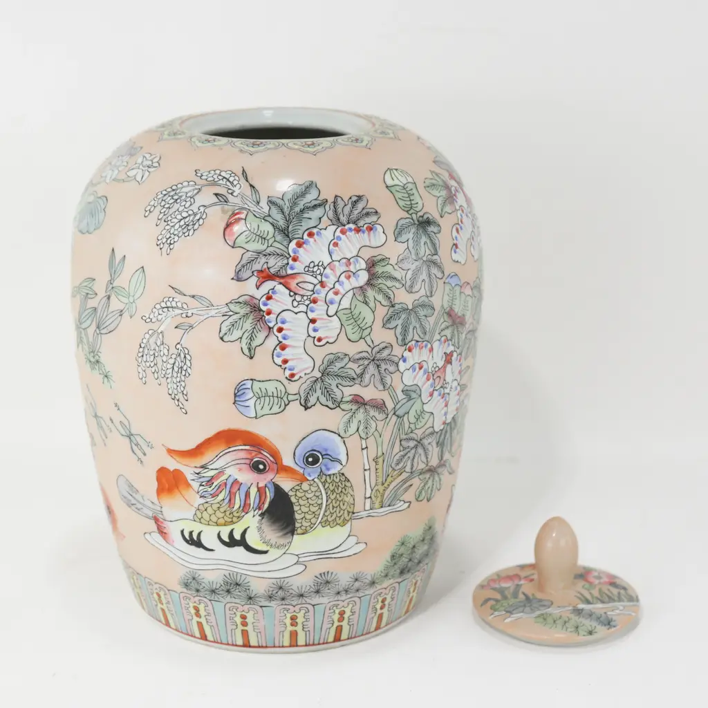 Vintage Hand-Painted Porcelain Ginger Jar With Mandarin Ducks And Floral Motif