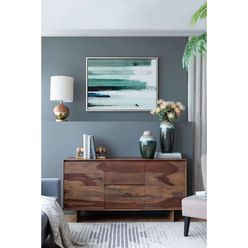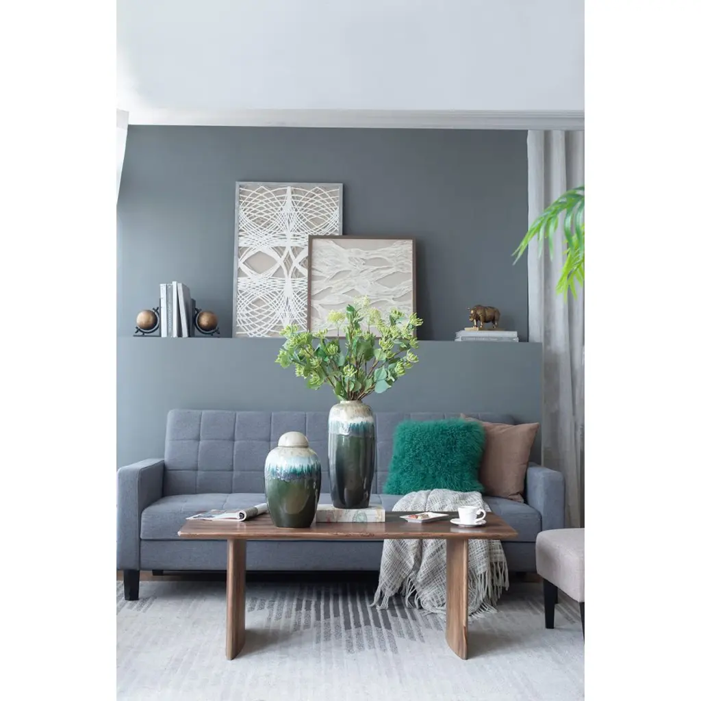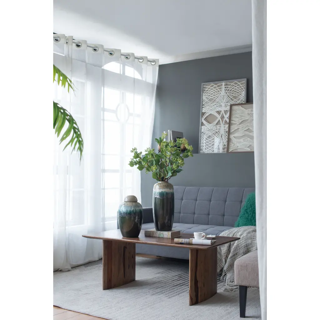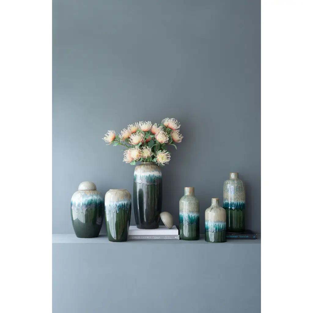 Spacious and stylish, the virga set of two round, stoneware jars is an eye-catching way to decorate a home. The ceramic pair features a gorgeous reactive glazed finish transitioning from earth tones to black with hints of blue and green.
