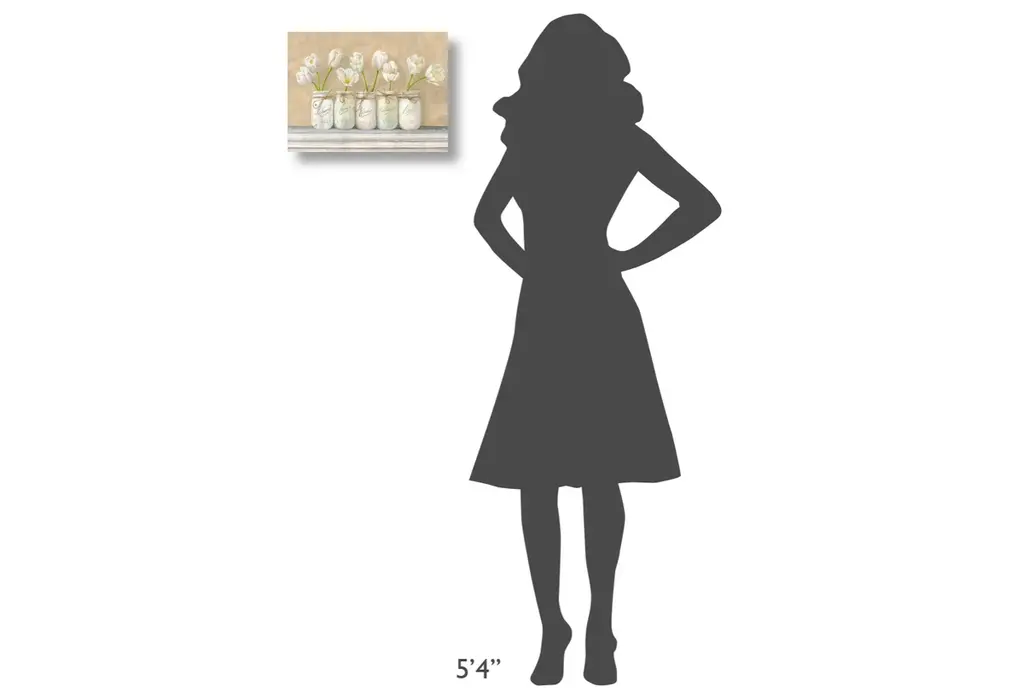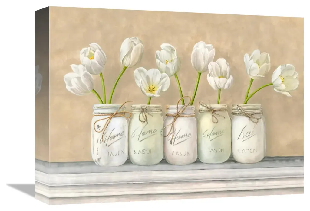 "White Tulips In Mason Jars" By Jenny Thomlinson, 16"x12"