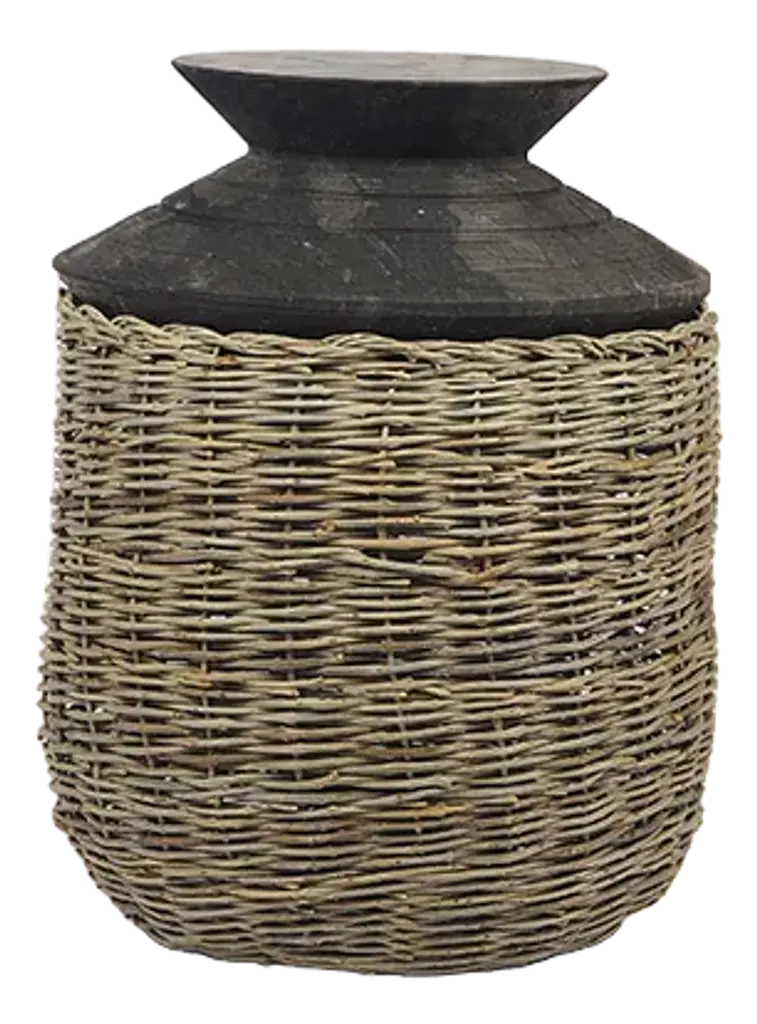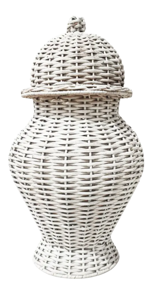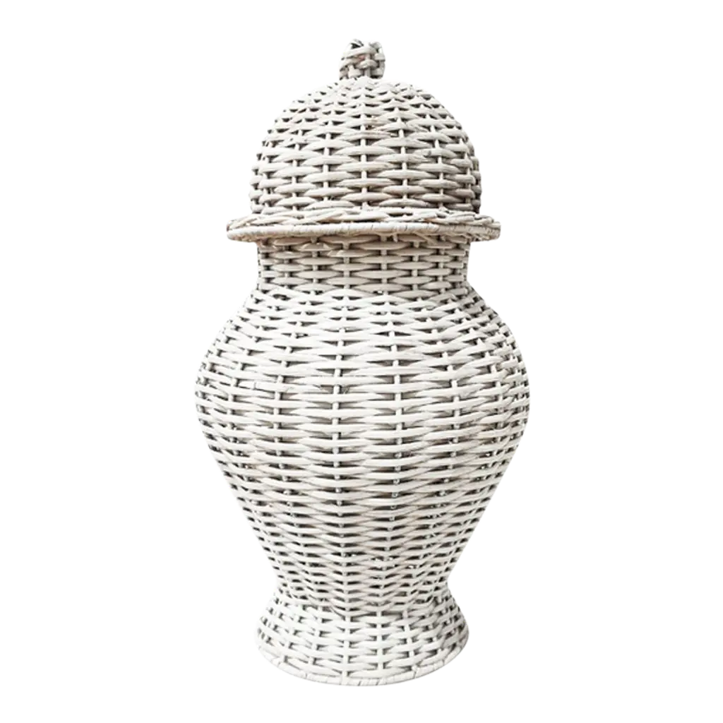 Wicker Ginger Jar In White, Large