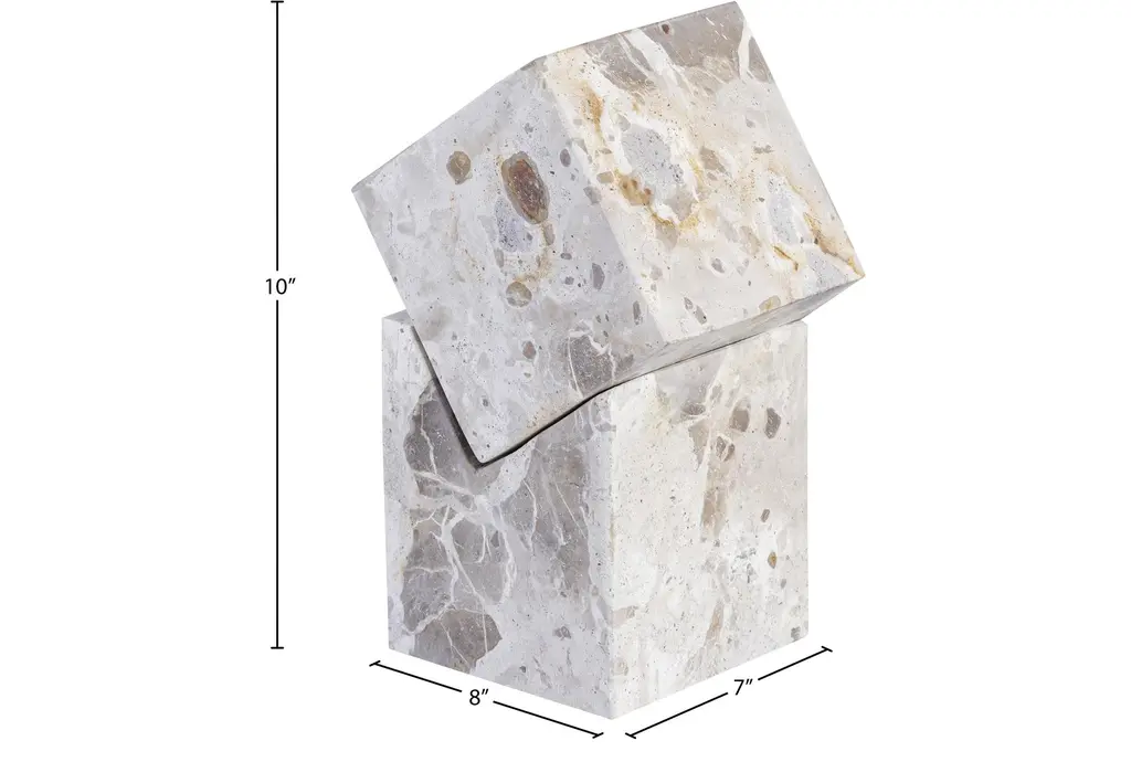Enhance your modern decor with the 10" X 7" Quad Beige Marble Cube Table Decor. This geometric accent object features a soft beige color that complements any neutral palette. Perfect for adding a touch of contemporary style to your space.
