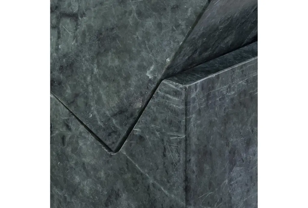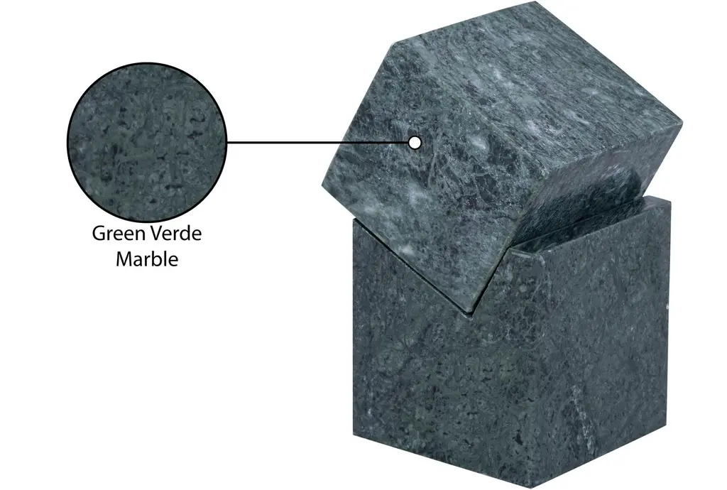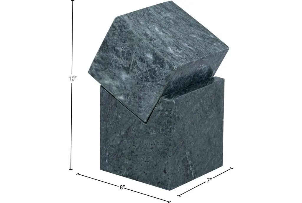 Discover the 10" X 7" Quad Green Marble Cube Table Decor, a modern accent piece that brings a touch of sophistication to any room. Crafted from genuine marble, this geometric shape adds a contemporary flair to your space. The dark green hue of the marble complements neutral and dark natural color schemes, making it a versatile addition to your decor.