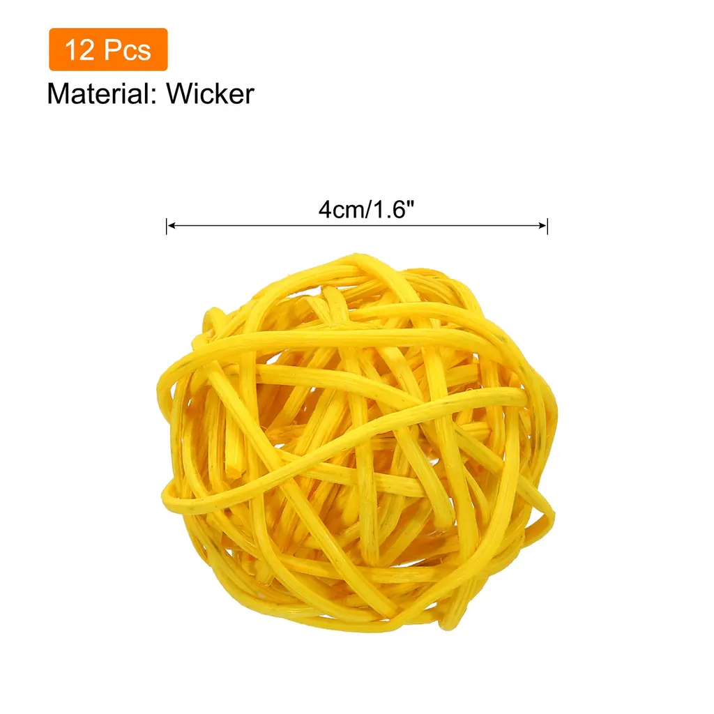 What is this?These decorative rattan balls are very suitable for DIY craft projects, vase fillers, flower arrangements, home, garden, dining table, wall, Christmas party hanging decorations.What will I get?In the package: wicker rattan balls x 12 Pcs;Diameter: 1.6 Inch;Color: Red;Material: Wicker.Is there any advantages of the product?Wicker decorative balls are handmade by the craftsmen, evenly dyed, simple and durable, light weight, small size, reusable and suitable for many occasions.How to use it?Wicker rattan decorative balls are perfect for DIY into various crafts and can be combined with various things. You can use these wicker balls to realize your creativity and imagination and add a touch of nature to your home , such as hanging these wicker rattan balls on the wall, or stringing them with lights, or putting them in a clear vase.What should I notice?Our wicker decorative balls are handmade and may have some deviations in size, color and shape.