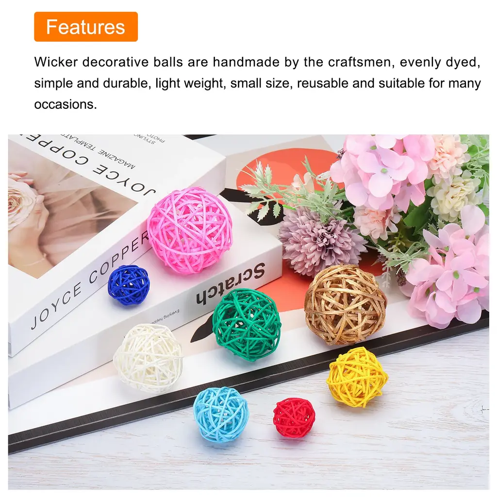 What is this?These decorative rattan balls are very suitable for DIY craft projects, vase fillers, flower arrangements, home, garden, dining table, wall, Christmas party hanging decorations.What will I get?In the package: wicker rattan balls x 12 Pcs;Diameter: 1.6 Inch;Color: Red;Material: Wicker.Is there any advantages of the product?Wicker decorative balls are handmade by the craftsmen, evenly dyed, simple and durable, light weight, small size, reusable and suitable for many occasions.How to use it?Wicker rattan decorative balls are perfect for DIY into various crafts and can be combined with various things. You can use these wicker balls to realize your creativity and imagination and add a touch of nature to your home , such as hanging these wicker rattan balls on the wall, or stringing them with lights, or putting them in a clear vase.What should I notice?Our wicker decorative balls are handmade and may have some deviations in size, color and shape.