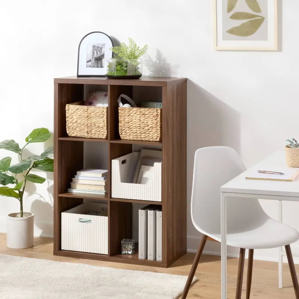 Make the most of your indoor space with this 6-Cube Decorative Organizer from Brightroom™. Made from wood, this 6-cube decorative organizer features a modern, open design that offers convenient space to organize and display everything from souvenirs to your favorite books. Plus, the open-back design provides ideal cord management for electronics and lamps. Best of all, the natural walnut hue pairs well with a wide variety of decor styles and color schemes.Brightroom™: See your space in a new light.