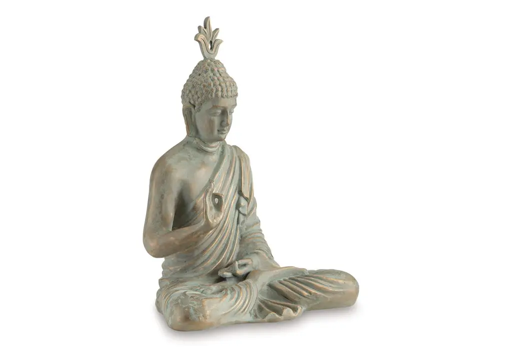 Enhance your home decor with the 17 Inch Brown Bronze Resin Buddha Decor. This traditional piece features a unique triangle shape and a calming brown color, perfect for creating a serene atmosphere in any room. Made from durable resin with a polystone content, this Buddha figurine is both stylish and easy to maintain.