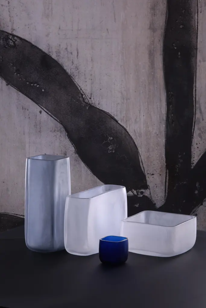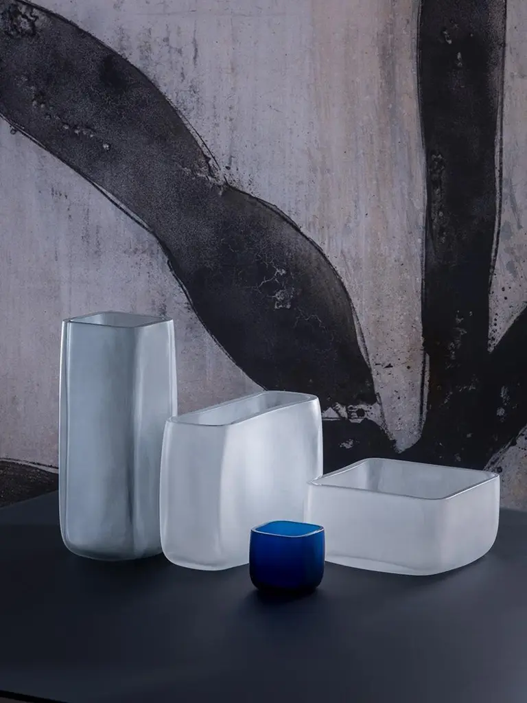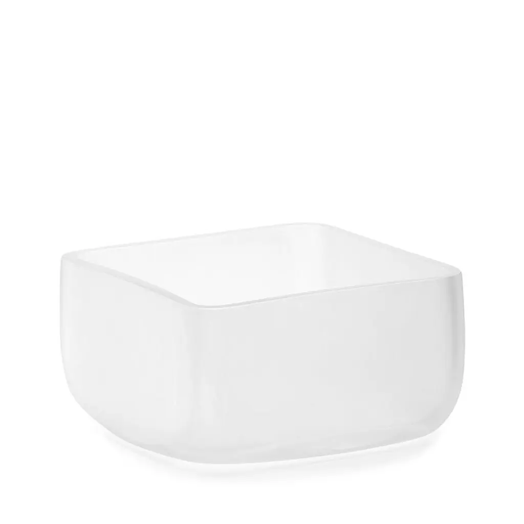 21st century LPWK cubes bowl frosted Murano glass various colors.Designed by LPWK, cubes is a collection comprising bowls, minicontainers and a vase made of frosted Murano glass, in which lines, expressly inspired by the cube – find new harmony in the rounded corners. Offered in neutral colors as well as a vivid blue nuance, cubes are available with a palette of 21 special colors provided by Purho. A variety that allows for countless combinations of shapes and colors able to complement any type of interior decor.Palette of 21 colors:Transparent blown glass01. Ice crystal 02. Milky white 03. Honey 04. Ruby Venice 05. Amethyst pink 06. Coffee 07. Amber yellow 08. Capri yellow 09. Mandarin orange 10. Oriental red 11. Green apple 12. Caribbean green 13. Green lagoon 14. Emerald green 15. Blue Mediterranean 16. Peacock blue 17. Ocean blue 18. Florence purple 19. London grey 20. Black gondolaSpecial processing techniques21. Gold leaf.