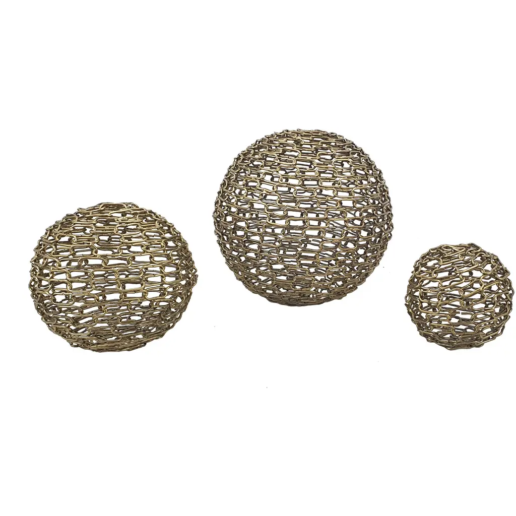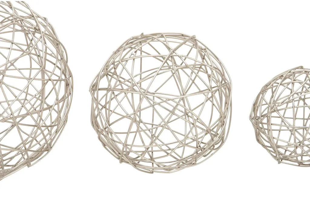 3 Piece Set Natural Metal Silver Spheres | Sets | Set Of 3 | Round | Curved