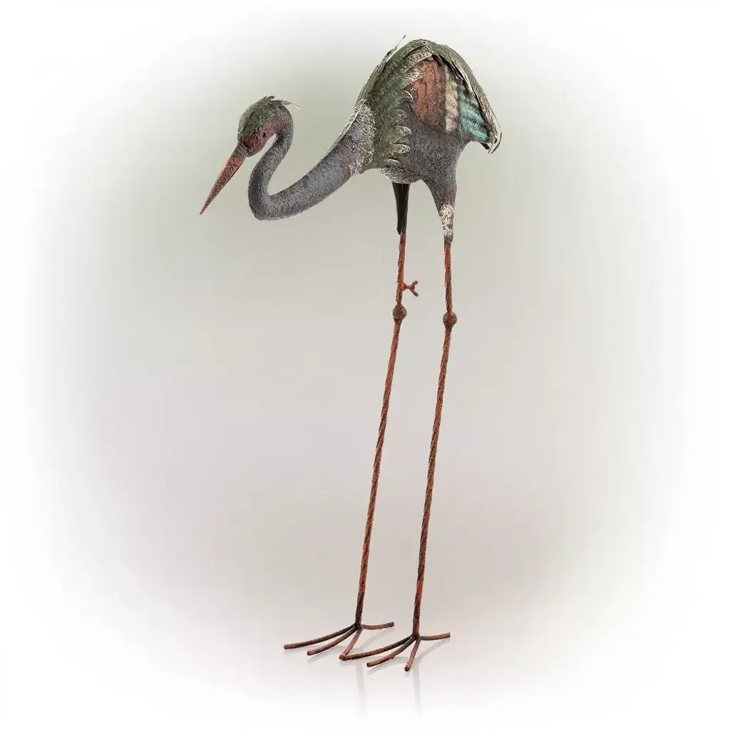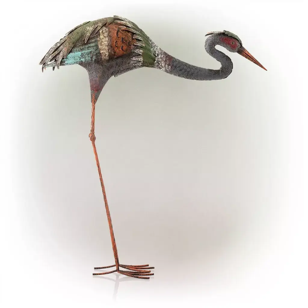 30" Metal Crane Statue - Alpine Corporation: Durable, Rust-resistant Garden Decor