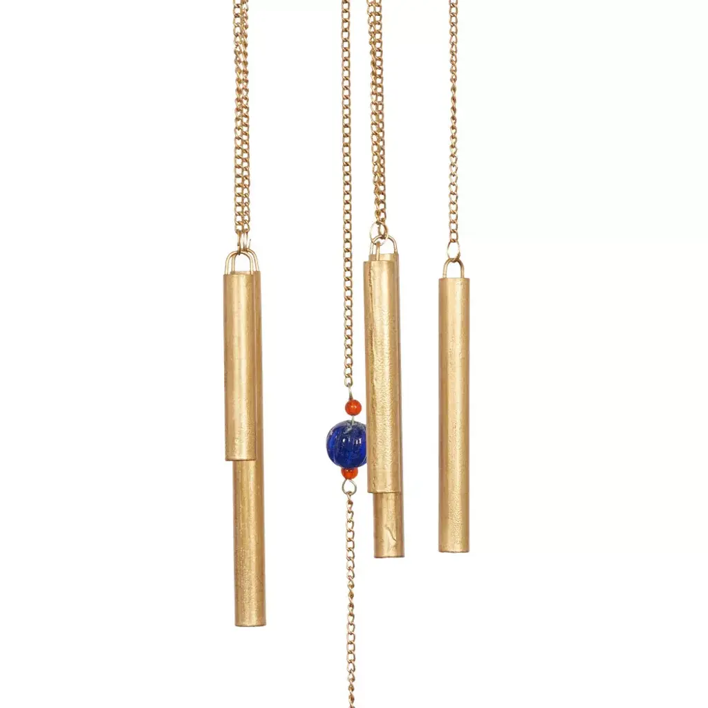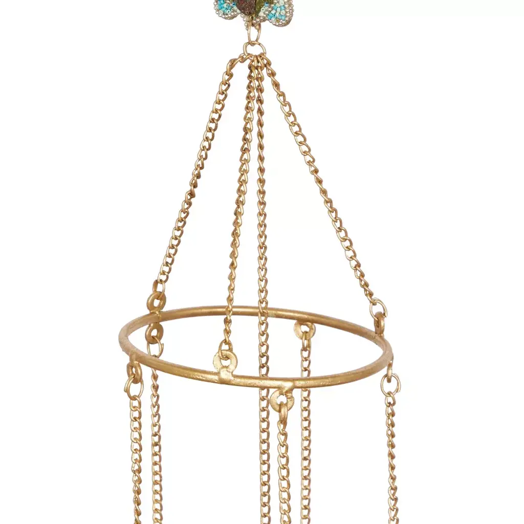 A light and delicate piece to create a whimsical atmosphere anywhere in your home. The soothing sound of this windchime will keep you relax and rejuvenated throughout the day. Bring some coastal vibes in your eclectic home with this turtle designed windchime in your living room. This item ships in 1 carton. Metal windchime makes a great gift for any occasion. Chain and loop attached for easy hang; nails and screws are not included. Suitable for indoor and outdoor use. This item ships fully assembled in one piece. Made in India. This is a single gold colored wind chime. Eclectic style.