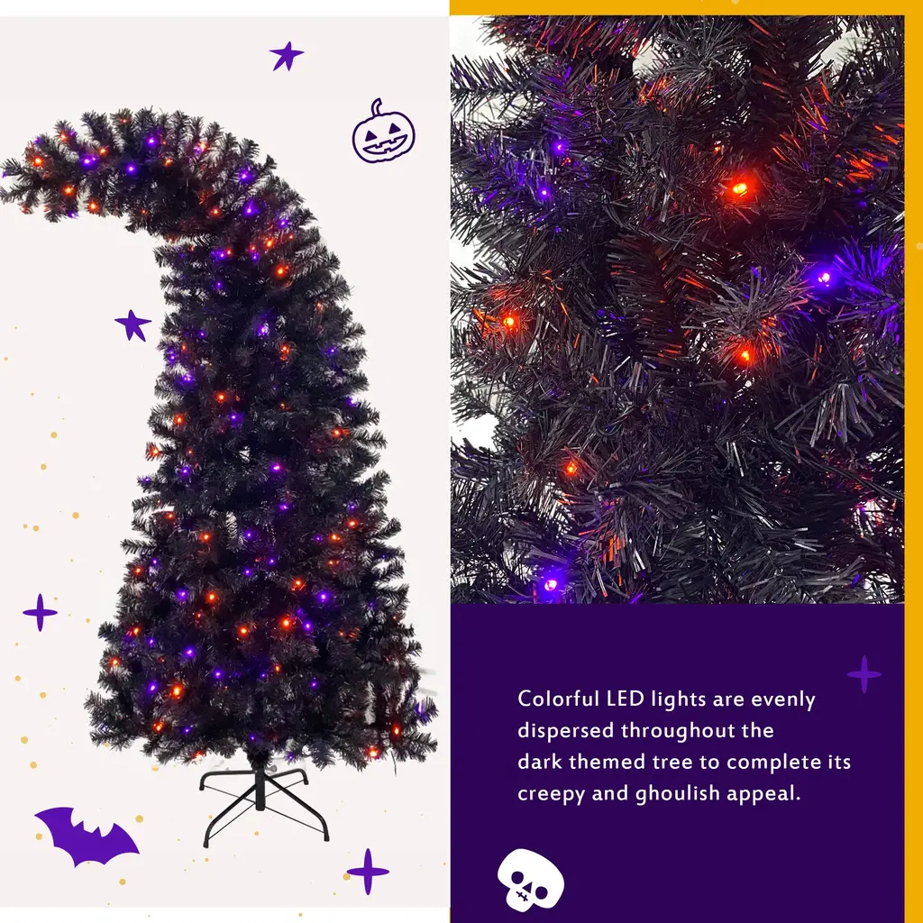 6Ft Artificial Fir Bent Top Halloween Christmas Tree, Xmas Tree Bendable Grinch Style Christmas Tree Holiday Decoration - Black